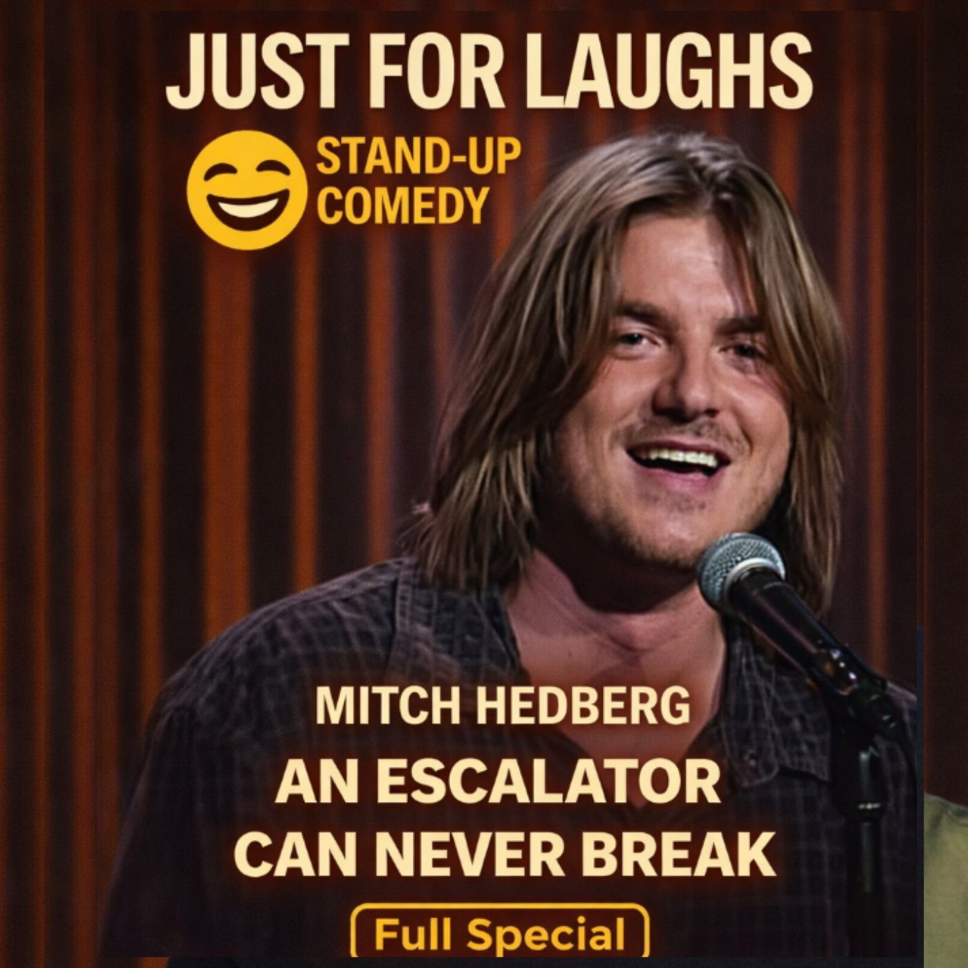In An Escalator Can Never Break, Mitch Hedberg delivers one of the most iconic full specials in stand-up history—effortlessly weird, brilliantly absurd, and endlessly quotable. With his laid-back delivery, surreal one-liners, and genius misdirection, Mitch turns everyday thoughts into jokes that feel both stupidly simple and impossibly clever at the same time.