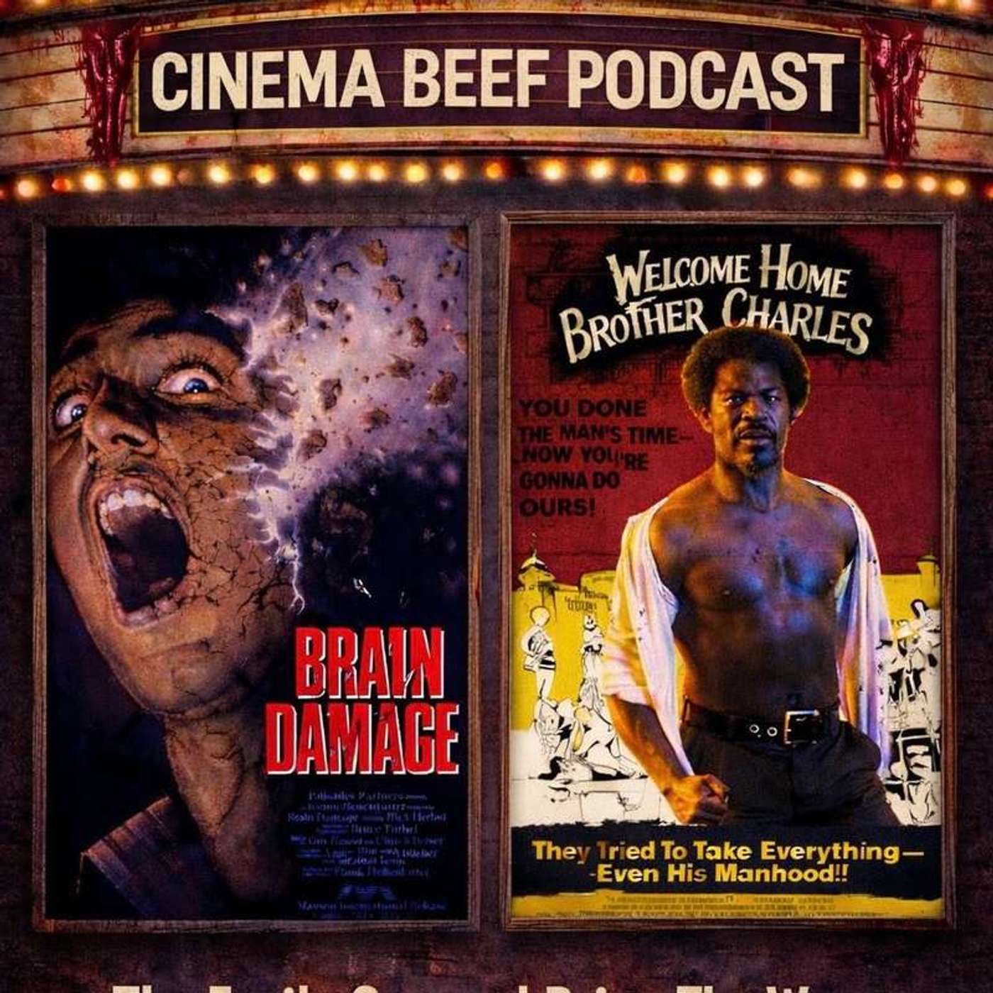 Cinema Beef Podcast : The Easily Spurred Get The Worm (Welcome Home, Brother Charles/Brain Damage)