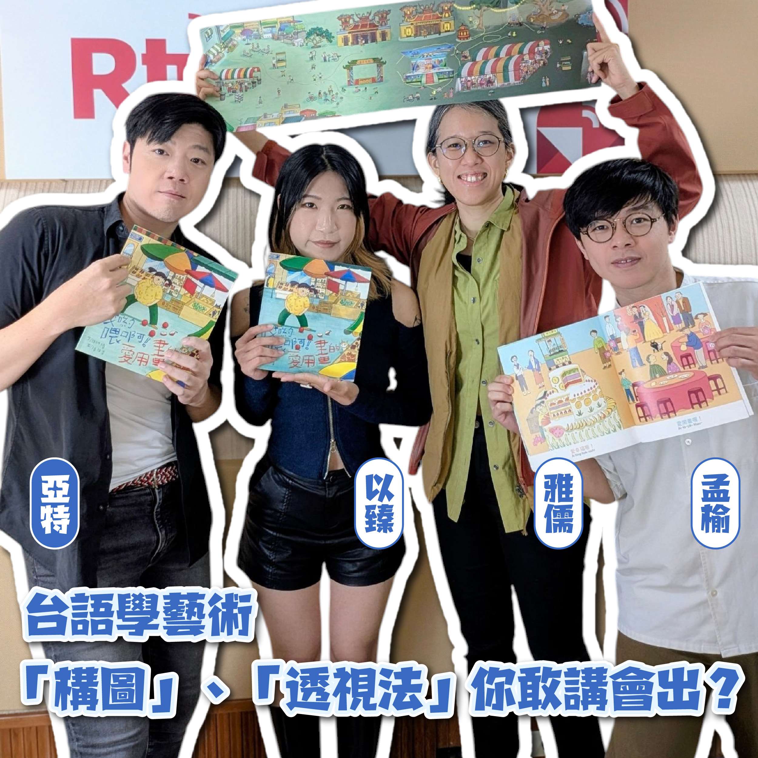 紅色、藍色、青色你會曉講,毋過「薰衣草紫」、「青蘋果綠」、「天空藍」台語欲按怎講?畫圖的工夫像「構圖」、「透視法」又閣按怎用台語表達?市面上現此時出現一本主打「用台語學藝術」的繪本《哎呦喂啊!愛用畫的》,圖面是今上時行的「台灣感性」風格,也是在地日常風景,聽講繪本閣有種種機關,幫助囡仔看繪本學藝術閣練台語?這集邀請發起繪本計畫的「畸零地工作室」成員孟榆佮以臻,來開拆這本台語繪本機關何在。