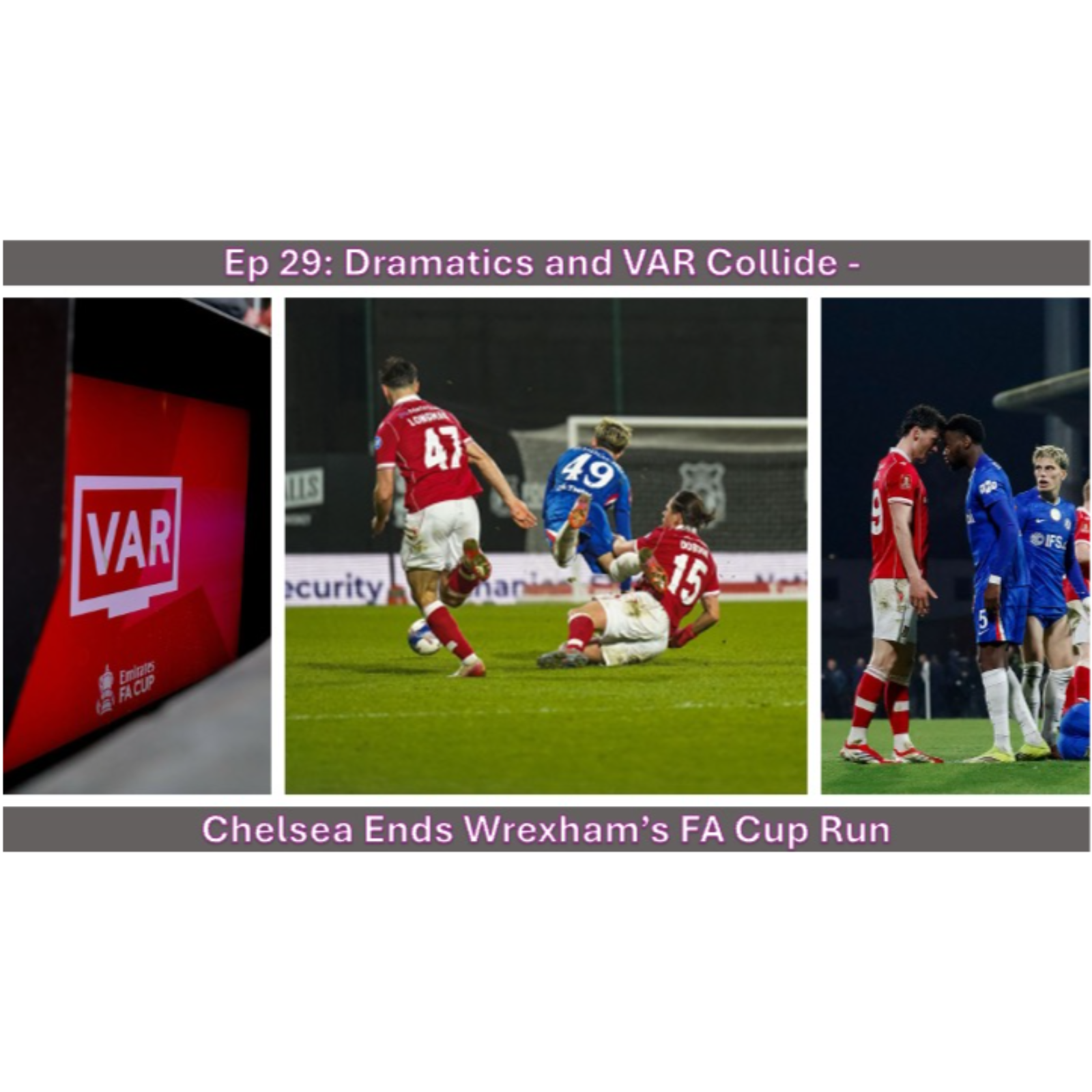 Dave and Courtney take a deep dive into the 5th Round FA Cup match between Wrexham and Chelsea. Technology was our enemy in this epic match, but Wrexham reinforced that they can play in the Premier League! Plus a look ahead to this week's matchups with Hull City (Matchday 36) and Swansea (Matchday 37).