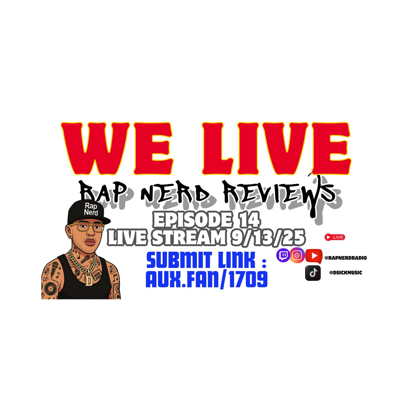 Catch Rap Nerd Reviews LIVE every Saturday on TikTok (@dsickmusic), Twitch, YouTube, and IG (@rapnerdradio).