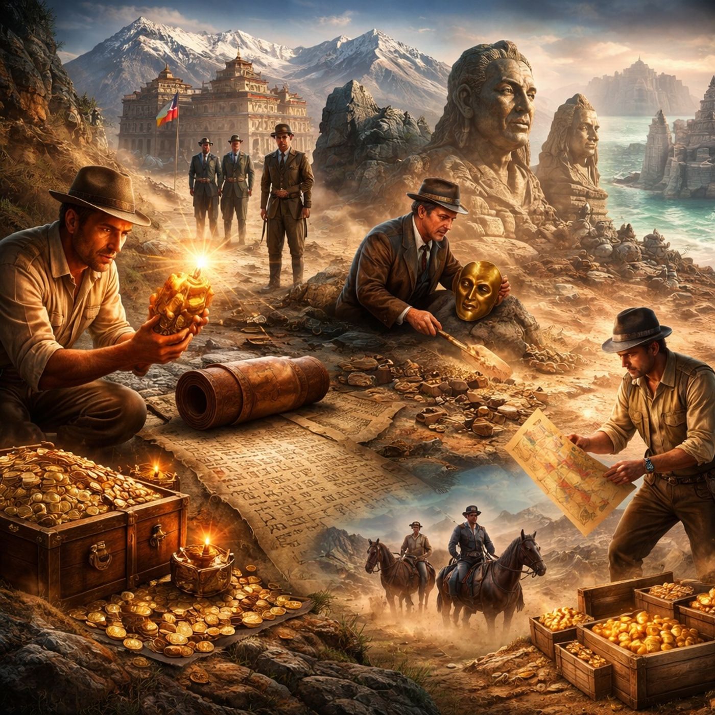 تلخص مجموعة من الأساطير والقصص الواقعية حول البحث عن كنوز مفقودة وتاريخ غامض في مناطق متنوعة حول العالم. تشمل الرحلات الاستكشافية محاولات النازيين للوصول إلى أتلانتس في تلال التبت، وسعي المستكشفين وراء ذهب كروجر المفقود في جنوب أفريقيا. كما تتناول هوس "شليمان" بإثبات وجود مدينة طروادة، ولغز لفافة البحر الميت النحاسية التي تحدد مواقع كنوز الهيكل. توضح القصص كيف سيطرت الرغبة في الثروة أو إثبات نظريات تاريخية وسياسية على حياة أشخاص كثيرين، أحيانًا إلى حد الإفلاس أو الموت. وتخلص المصادر إلى أن أغلب هذه الرحلات كانت تسعى وراء أوهام أو حقائق مشوهة، لكنها تركت أثرًا واضحًا في الذاكرة الشعبية.