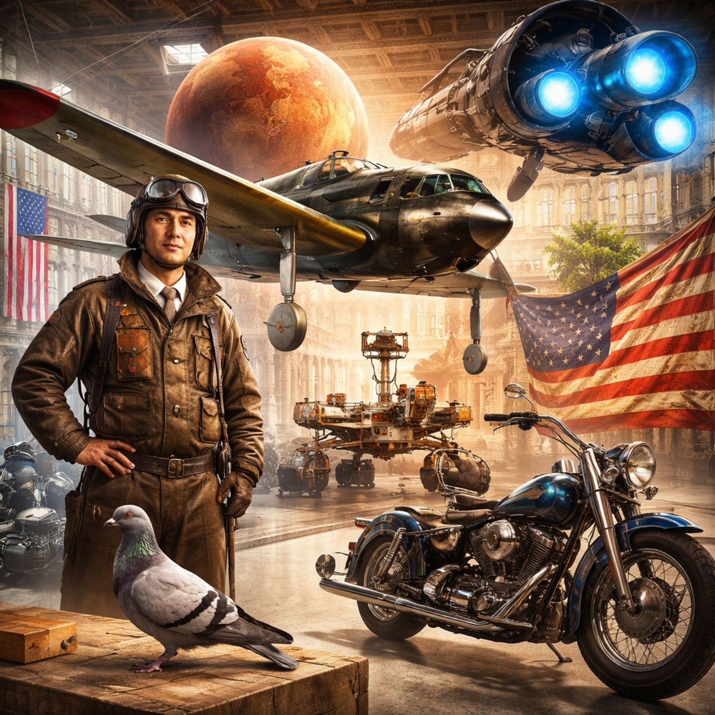 طيارة "زيرو" اليابانية مع طيارها المخلص، وشرح كيف ما زالت تُستخدم للطيران.قصة الحمام الزاجل "شير أمي" وإنقاذه للجنود في الحرب العالمية الأولى، وكشف العلم لسر الحاسة السادسة اللي بتساعد الطيور على العودة لبيوتها.استعراض تطور السفر للمريخ باستخدام محركات البلازما.تاريخ الأطراف الصناعية من الحرب الأهلية الأمريكية لعمليات زراعة الأيد المتطورة حاليًا.حكايات عن موتوسيكلات هارلي ديفيدسون ورمزيتها للحرية، وقصة العلم الأمريكي الأصلي اللي ألهم النشيد الوطني.المضمون كله يبرز البعد الإنساني والعلمي وراء أيقونات القوة والوطنية المحفوظة في المتحف.
