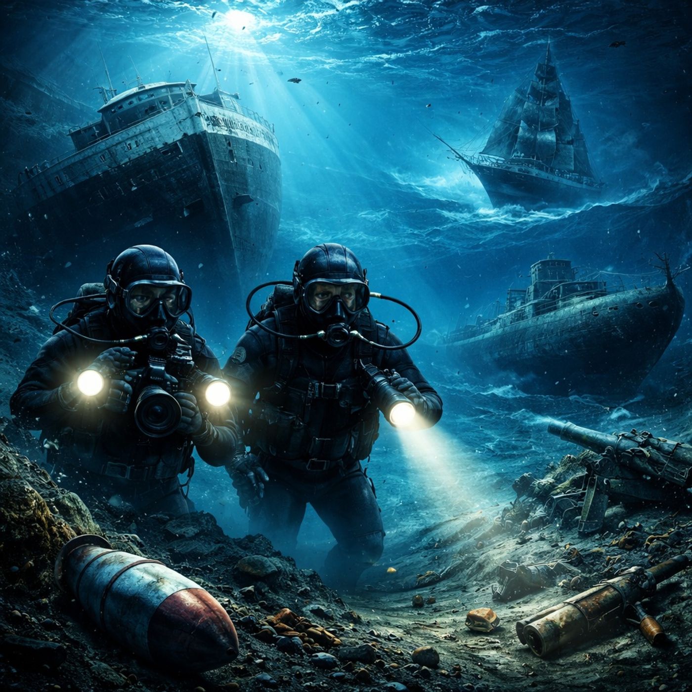 الفريق فتّش أعماق البحر وسط حطام عسكري قديم، وواجه مخاطر كبيرة مثل الذخائر غير المنفجرة والتضاريس البحرية الخطيرة. وبعد صعوبة في العثور على أدلة واضحة تحت الماء، انتقلوا للبحث على اليابسة في مواقع المنشآت العسكرية القديمة.