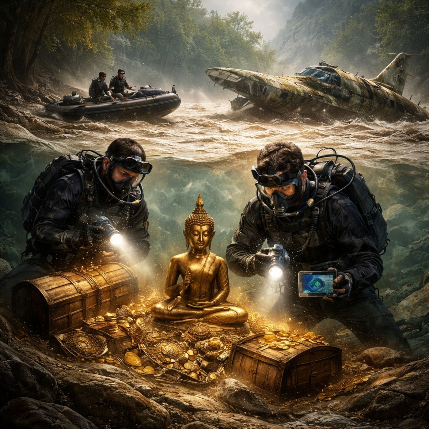 القصة بتتناول محاولة المستكشفين مايك ووارن فليتشر للعثور على حطام السفينة الفرنسية لو غراندييه، اللي غرقت سنة 1910 في نهر الميكونغ، واحد من أخطر وأعقد الأنهار في العالم بسبب التيارات العنيفة والرؤية شبه المنعدمة.السفينة كانت بتنقل كنوز أثرية نادرة، منها ذهب وتماثيل بوذا لها قيمة دينية وثقافية كبيرة لشعب لاوس. غرق السفينة خلا الكنوز دي تختفي تمامًا، وبقت هدف لبعثات استكشاف على مدار عقود.خلال البحث، الفريق واجه تحديات ضخمة: