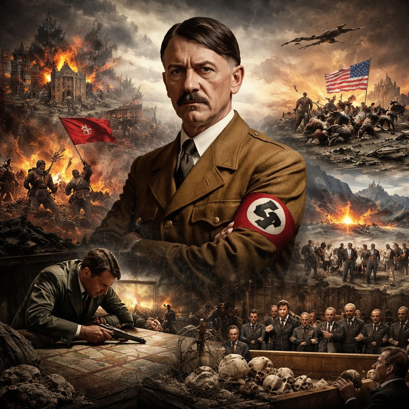 الأخطاء العسكرية: غزو روسيا وإعلان الحرب على أمريكا، اللي جمع أقوى دول العالم ضده.اللحظات الأخيرة: المخابئ في برلين وانتحار هتلر بعد انهيار الوضع العسكري والسياسي.الآثار: كشف بشاعة الجرائم النازية، والجهود الدولية لمحاكمات نورنبرج لمواجهة الإرث المظلم.