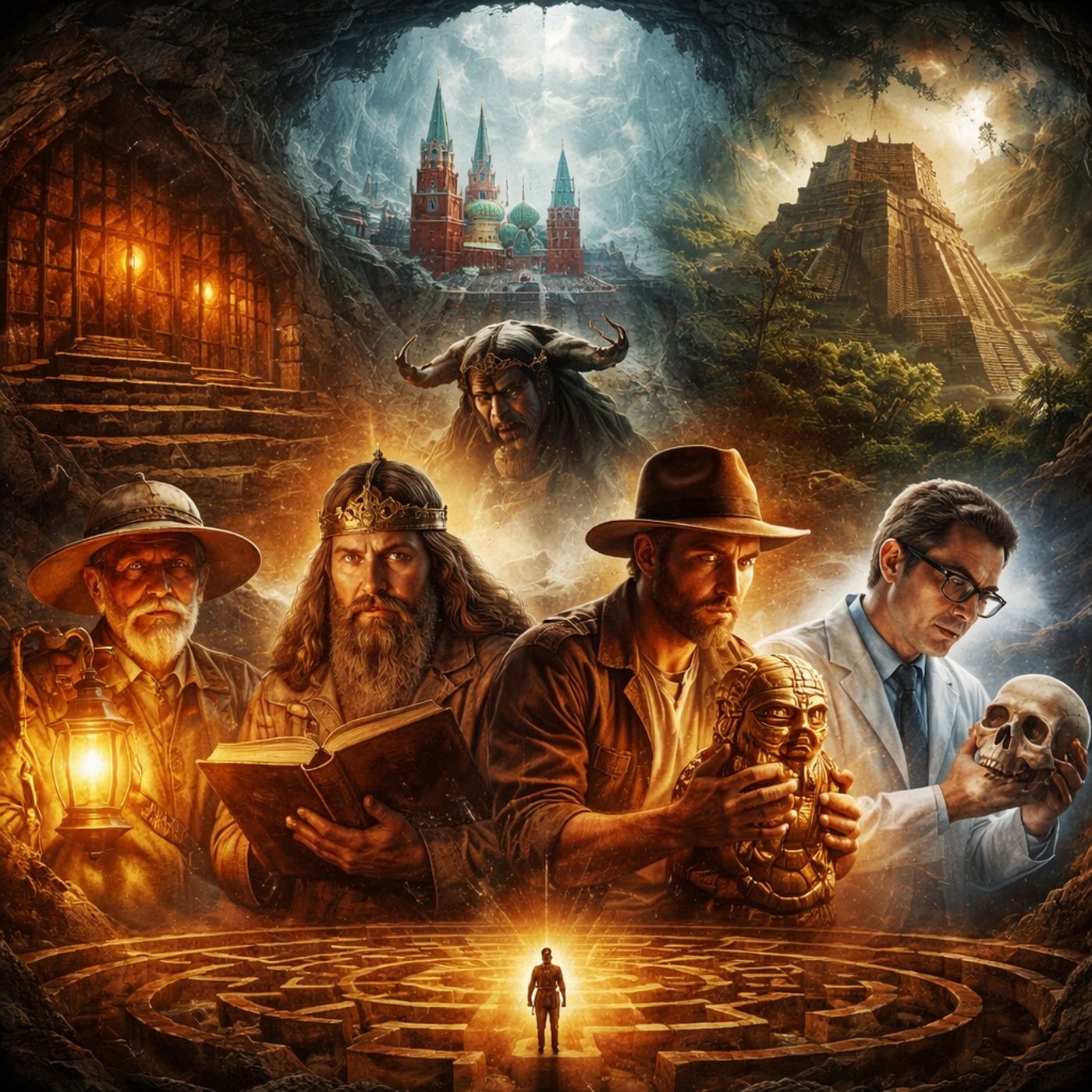 يعرض النص سلسلة من الألغاز التاريخية والرحلات الاستكشافية التي سعى فيها باحثون ومغامرون لكشف حقيقة الأساطير القديمة. يبدأ بالبحث عن مكتبة إيفان الرهيب المفقودة في دهاليز الكرملين، ومحاولات عالم الآثار ستيليتكي المحفوفة بالخطر لفك أسرار ممراتها السرية. ثم ينتقل إلى أسطورة كنوز مونتيزوما المدفونة في يوتا، وكيف قادت رحلة فريدي كريستال قرية كاملة وراء وهم الذهب الملعون. كما يتناول لغز رفات جان دارك التي تبيّن لاحقًا، عبر العلم الحديث، أنها تزوير ذكي باستخدام مومياء مصرية. ويختتم بقصة آرثر إيفانز الذي أثبت من خلال تنقيباته في كريت أن أسطورة المينوتور والمتاهة تستند إلى جذور تاريخية حقيقية، كاشفًا عن حضارة المينويين كأحد أقدم أسس الحضارة الأوروبية.