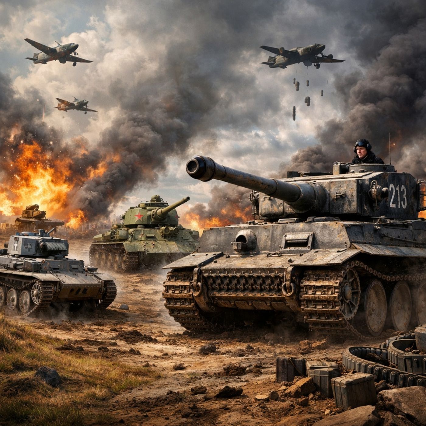 يوضح النص مسار تطور الدبابات الألمانية خلال الحرب العالمية الثانية، حيث انتقلت بسرعة من مركبات خفيفة محدودة إلى دبابات ثقيلة مرعبة مثل التايجر. يشرح كيف اعتمدت ألمانيا في البداية على تكتيكات حرب البرق لتعويض النقص العددي في العتاد، قبل أن تصطدم بالتفوق المفاجئ للدبابات السوفيتية وعلى رأسها T-34. هذه الصدمة دفعت المهندسين الألمان إلى التركيز المفرط على زيادة التدريع وقوة النيران على حساب البساطة وسهولة الإنتاج. ويبرز السرد صراع النوعية مقابل الكمية، حيث تفوقت الدبابات الألمانية تقنيًا لكنها عانت من قلة العدد، التعقيد، وصعوبة الصيانة. وفي النهاية، أدى نقص الوقود، القصف الجوي المستمر، وخسارة قادة بارزين إلى انهيار فعالية سلاح المدرعات الألماني رغم تفوقه الهندسي.