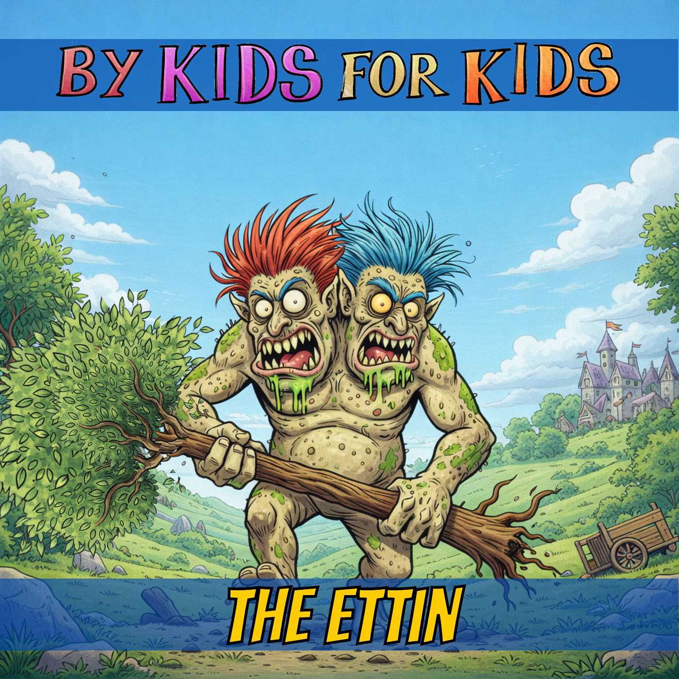 The Terrible Trio—Grumblegut the Ogre, Trolla the Troll, and Snotbeard the Giant—are in a very foul mood! 😠 They are stomping through the woods, looking for something to smash or chase. But instead of a fight, they find a small, grey, wobbly Blob sitting on a stone.