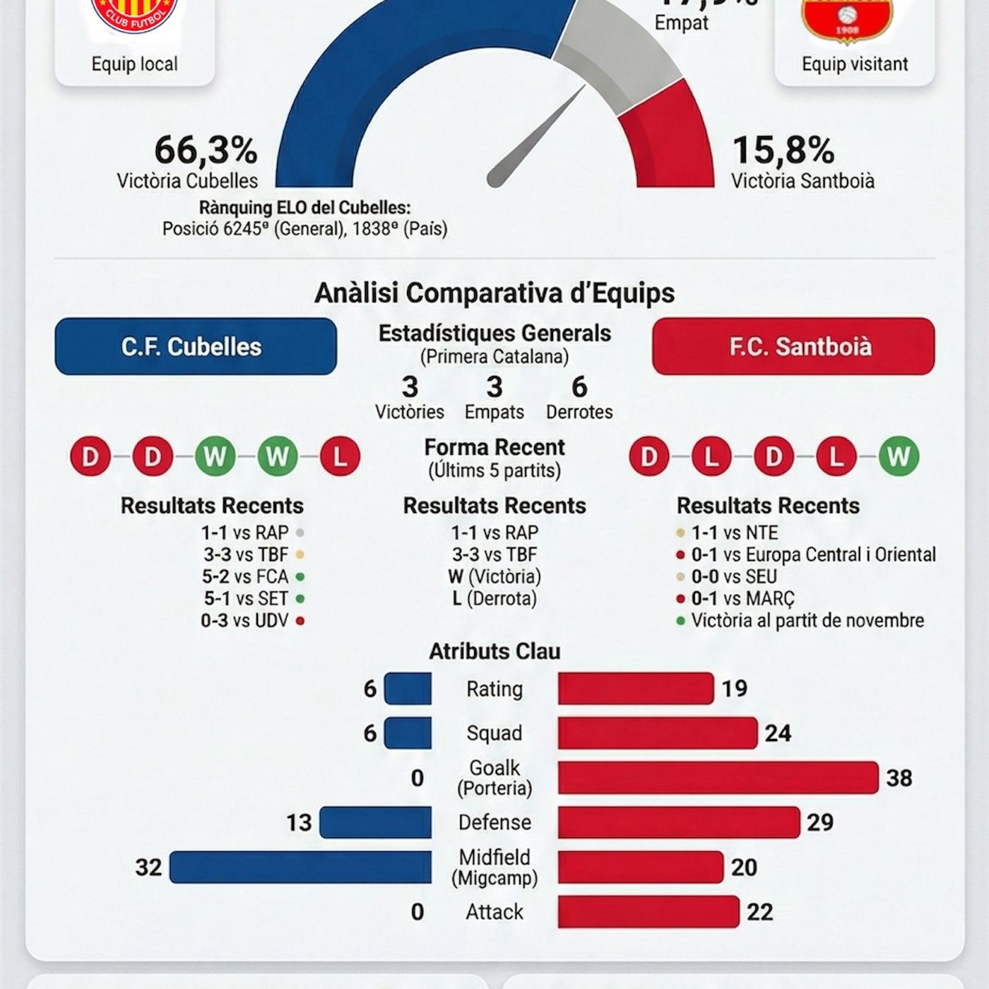 Nota: Aquestes dades són interpretacions del rendiment passat i no garanteixen un resultat futur. El futbol és imprevisible i qualsevol incidència durant el joc pot canviar el marcador final.