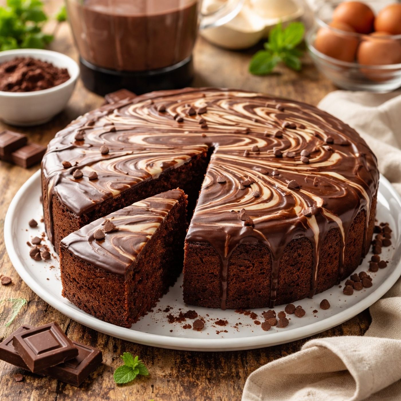Provides a guide for making a family-sized chocolate cake using a standard blender for convenience.It begins with preparing the pan using clarified butter and cocoa powder, then blending eggs, sugar, and vanilla at high speed to create a light, airy texture. The recipe incorporates melted unsalted butter and milk to achieve a rich, bakery-quality flavor.After folding in the dry ingredients, the batter is baked and finished with a decorative marble glaze made from melted milk and white chocolate. The result is a fresh, elegant cake that combines the sophisticated crumb of a butter cake with the simplicity...