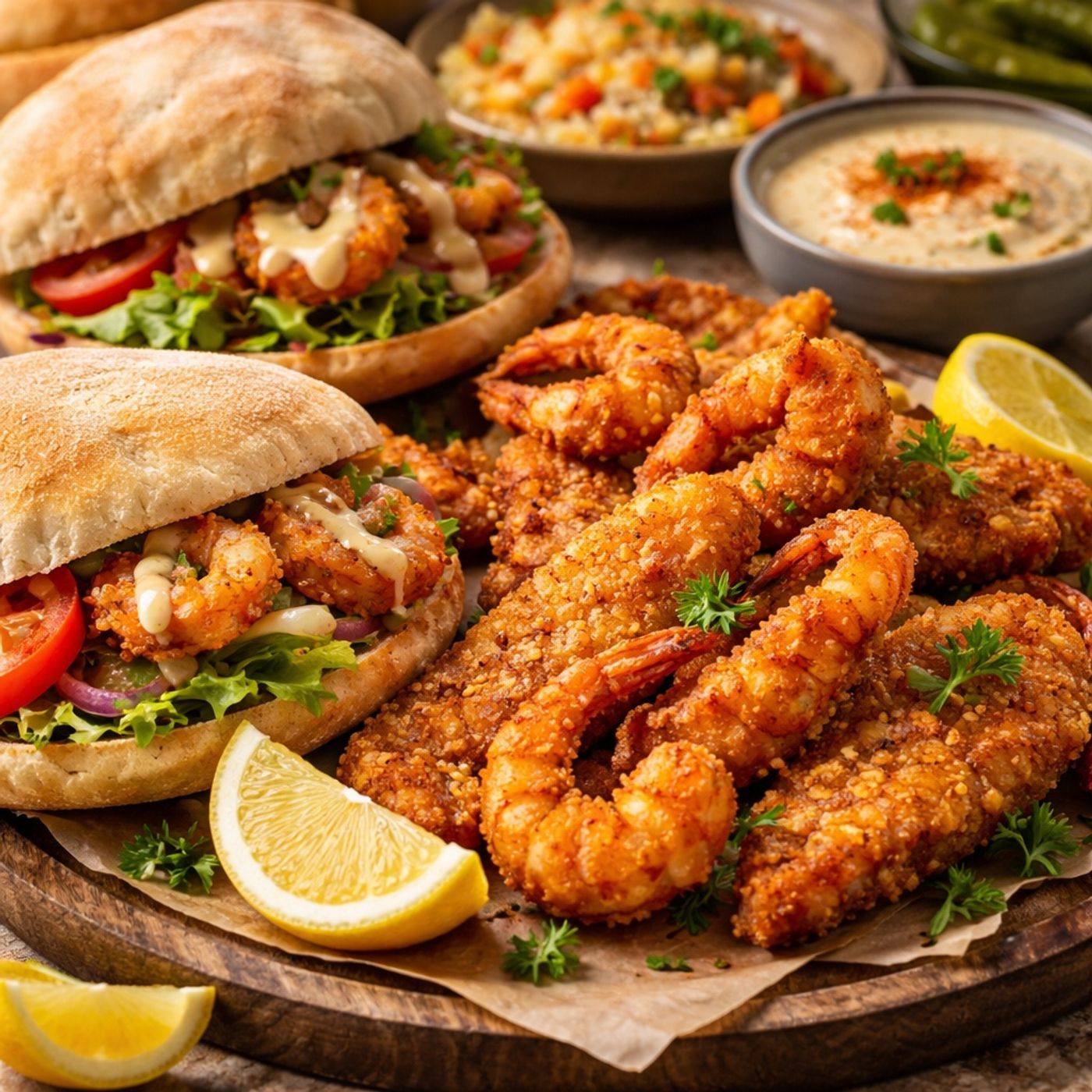 Explains how to recreate classic Egyptian street-style seafood at home by focusing on techniques that deliver a deeply crunchy, well-seasoned exterior for fried shrimp and fish fillets. The method relies on a precise two-step coating system that combines a spiced liquid batter with a dry flour-and-starch mix to lock in moisture while forming a crisp shell. Traditional spice blends built around cumin, coriander, and turmeric provide the familiar golden color and bold flavor associated with street vendors. The preparation is completed with a smooth tahini sauce and simple sandwich assembly using baladi bread and fresh vegetables. By following these...