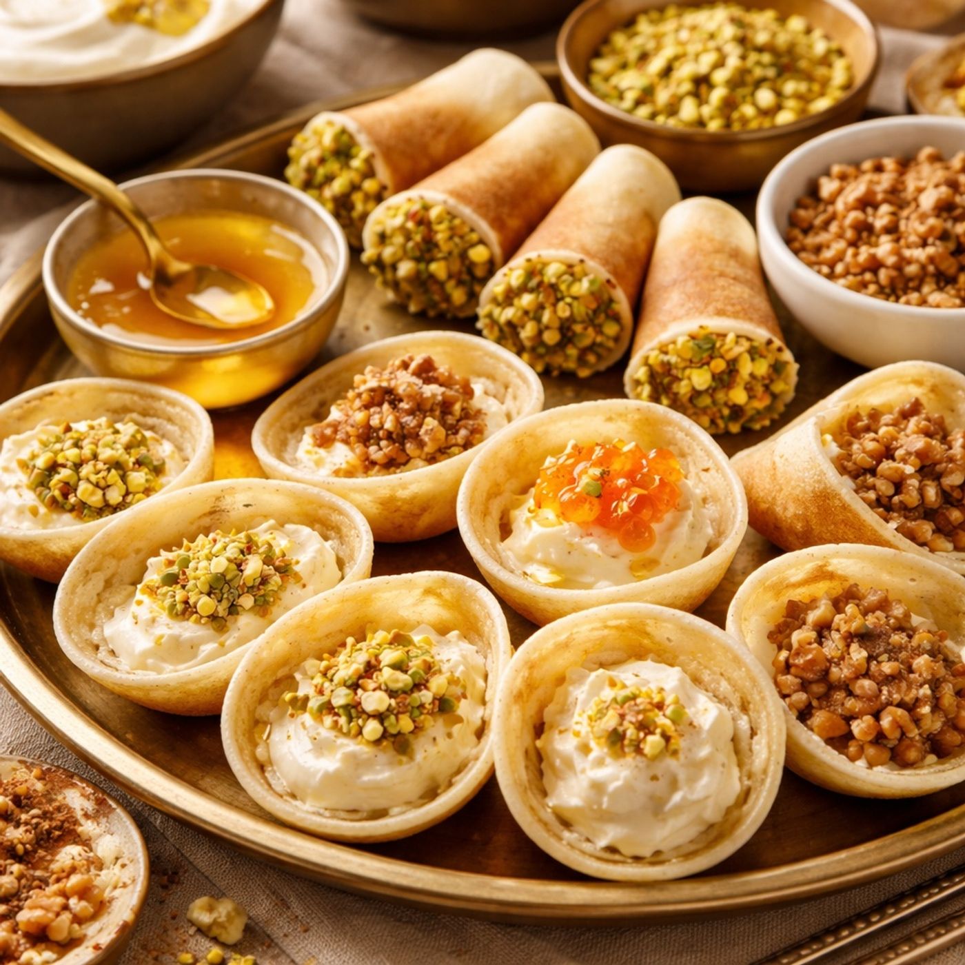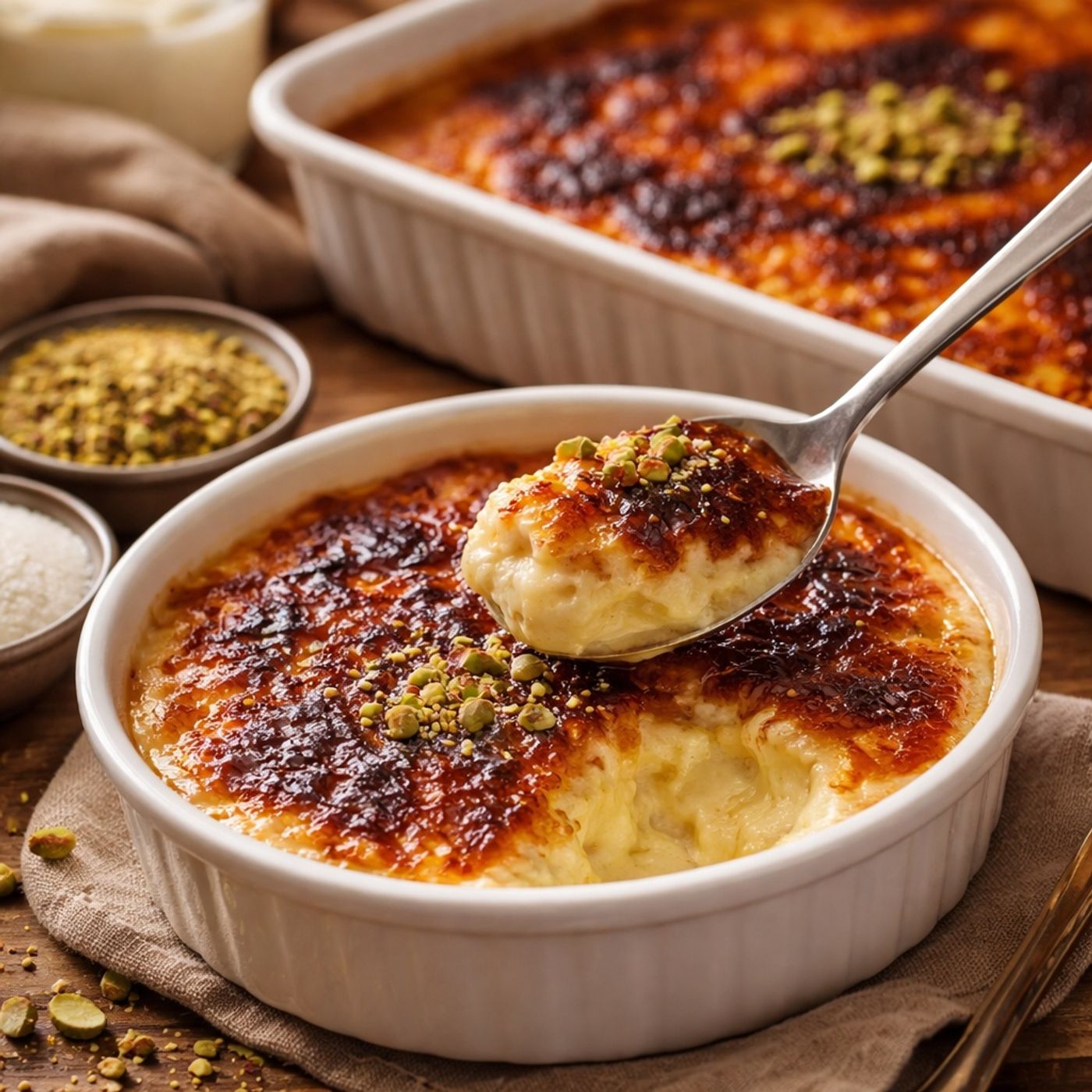 A detailed guide for making traditional kunafa with a rich, creamy filling and a perfect golden color. Using frozen dough for easy crumbling and coating the strands in ghee ensures a crisp texture, while a homemade ashta filling made from milk, starch, and fresh cream keeps the layers distinct and stable. The recipe also offers an alternative presentation with plain kunafa discs topped with whipped cream and pistachios. By carefully monitoring oven temperature and letting the pastry rest before adding sugar syrup, bakers can achieve a professional result that combines a crunchy exterior with a luscious, melt-in-the-mouth center.<...