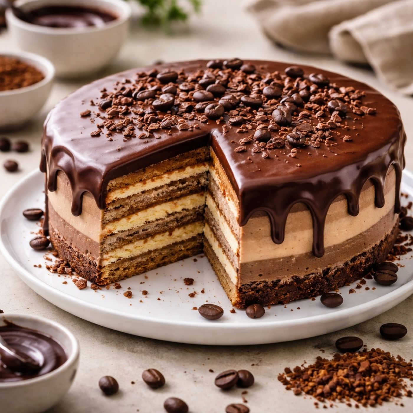 A method for making a no-bake Brazilian mocha cake that is simple and accessible for home cooks. It features a velvety cream filling made from milk, starch, and cocoa, layered between biscuits soaked in a coffee-infused milk mixture. The recipe achieves a balanced flavor reminiscent of a professional mocha while requiring neither eggs nor an oven. For finishing touches, an economical chocolate ganache is added, and tips are provided for proper chilling to ensure a cohesive texture. The result is an elegant summer dessert that relies on pantry-staple ingredients and easy assembly.