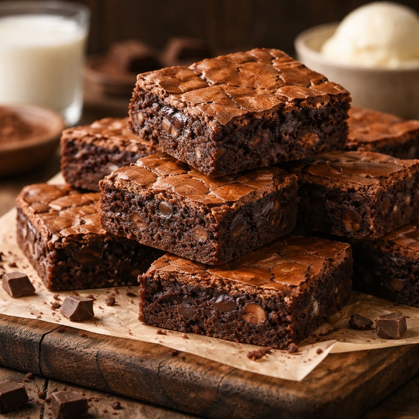 A straightforward method for making rich, homemade brownies using common pantry ingredients. Butter is browned over low heat to create a nutty, toasted flavor, and eggs and sugar are beaten until fluffy to achieve a signature crackly top. Cocoa powder and optional dark chocolate chunks are folded in, and practical tips are offered for baking times, pan sizes, and sugar type flexibility. The instructions also include serving and storage suggestions, noting that the brownies pair well with milk or ice cream.