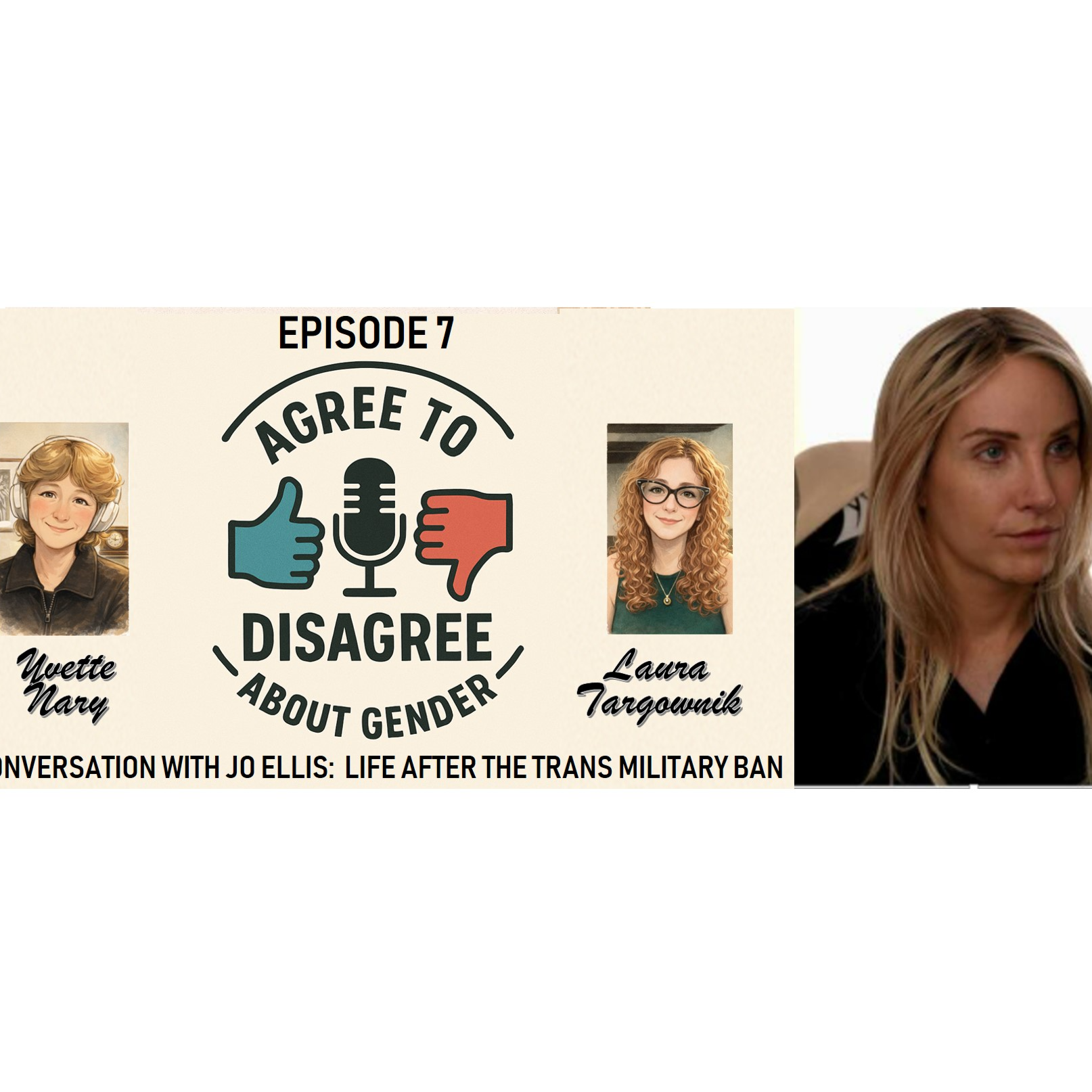 In Episode 7. Laura and Yvette sit down with former Virginia National Guard Black Hawk helicopter plot, aspiring comedian, and trans infuencer Jo Ellis to discuss the impact and rationale of the US trans military ban, how conservatism shapes her approach to trans-advocacy, and on the transformative power of dick jokes
