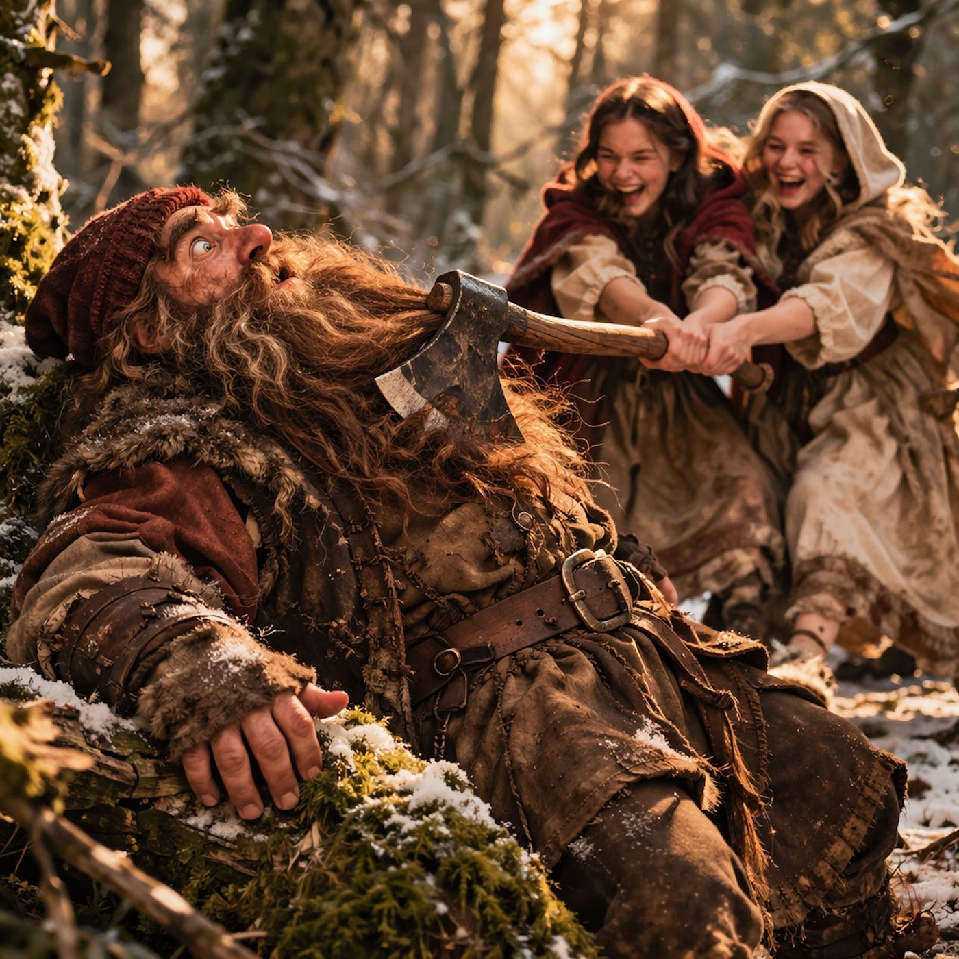 Snow-White and Rose-Red - Beard Trapped in Split Wood