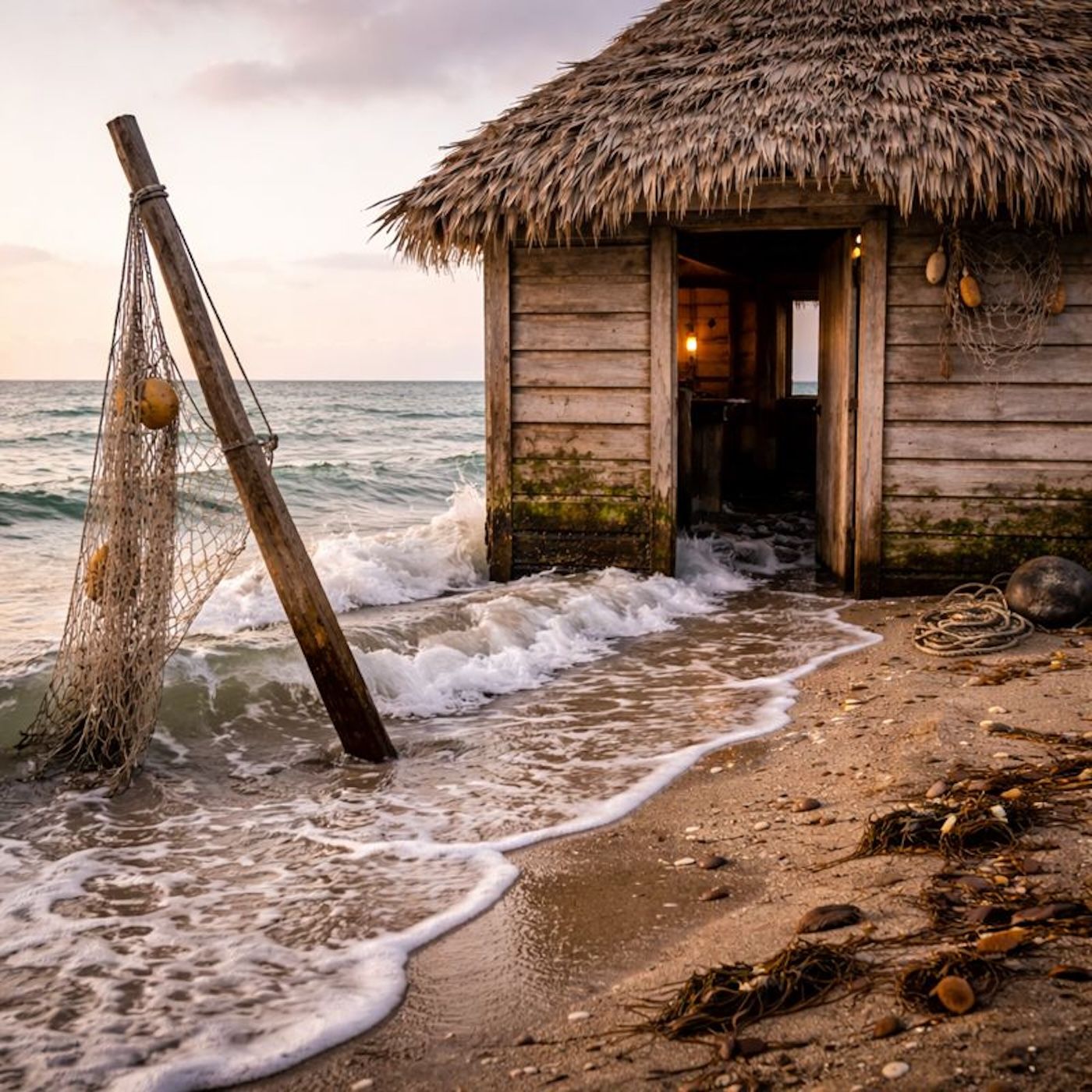 Net pole tilts seaward