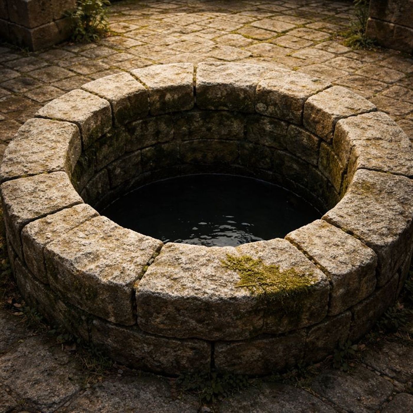 Water below the stone rim