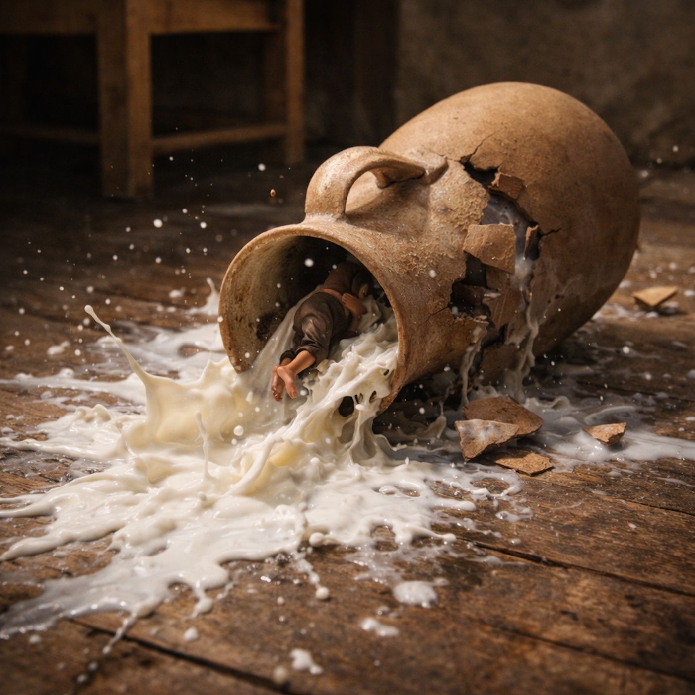 Thumbling slips into milk jug
