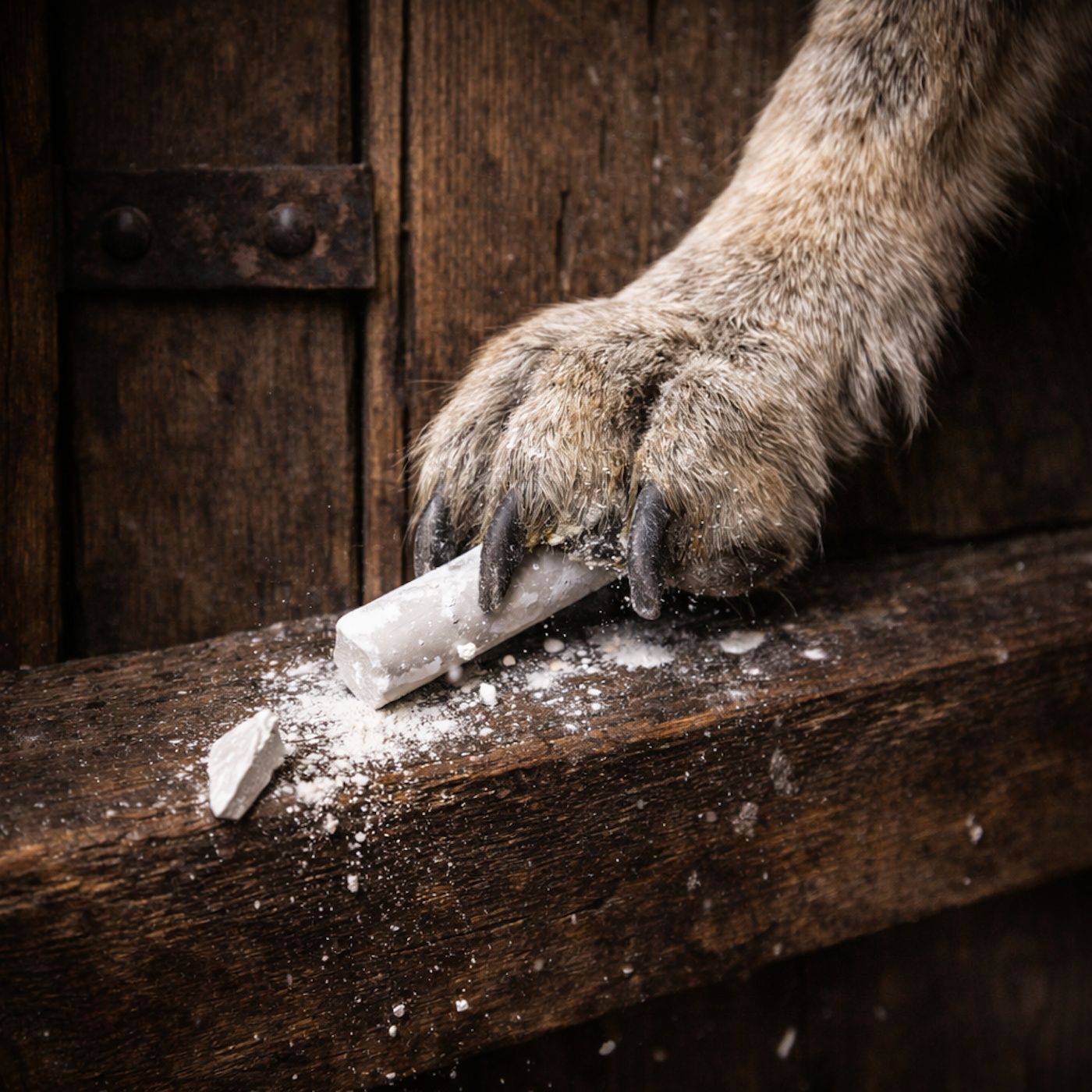 White chalk snaps in paw