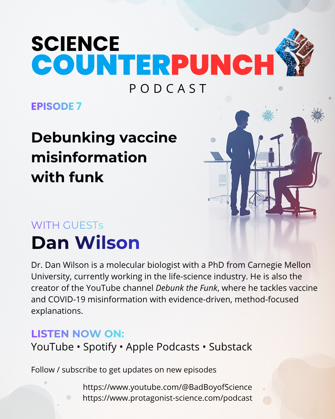 This week on Science Counterpunch, we’re joined by Dr. Dan Wilson, molecular biologist and creator of the Debunk the Funk YouTube Channel, to dissect how anti‑vaccine narratives became mainstream—and why so many institutions seem unprepared to stop them.