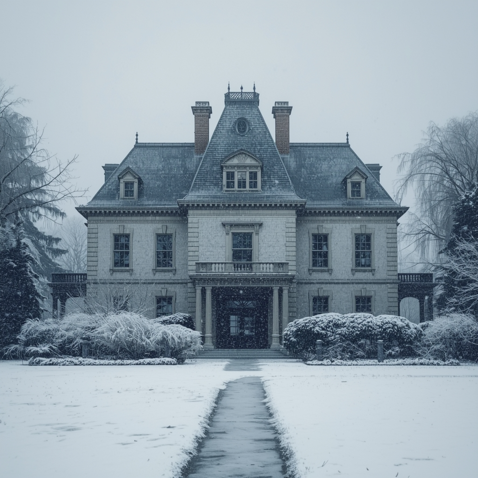 This describes the experience of being in a library of an old manor, curling up with a good book, while it is snowing outside.