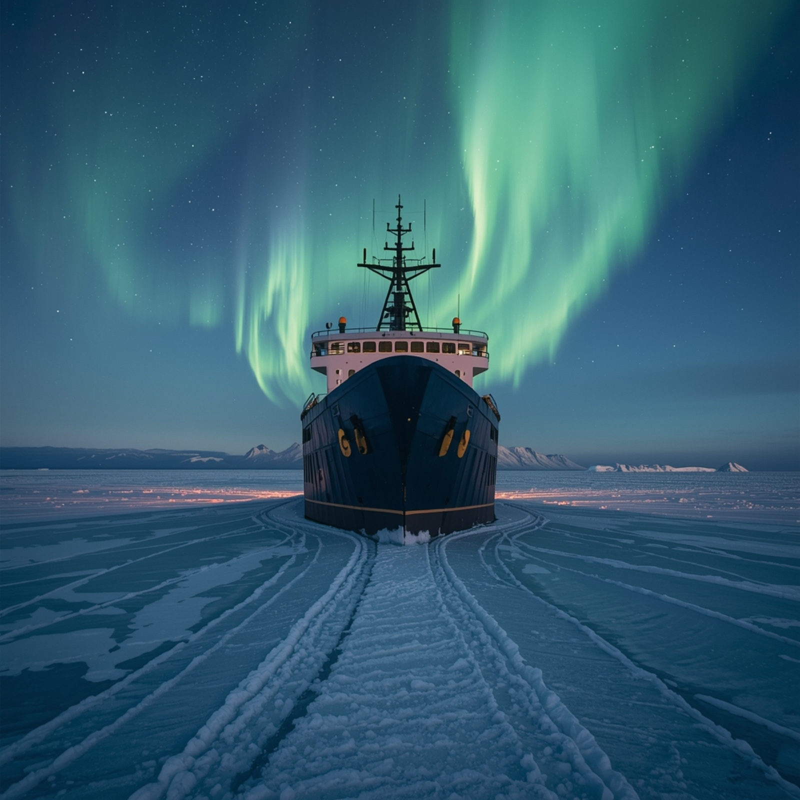 Imagine being on the deck of an icebreaker inside the arctic circle as it forges its way through the hard-packed ice, while the Aurora Borealis unfurls itself overhead.