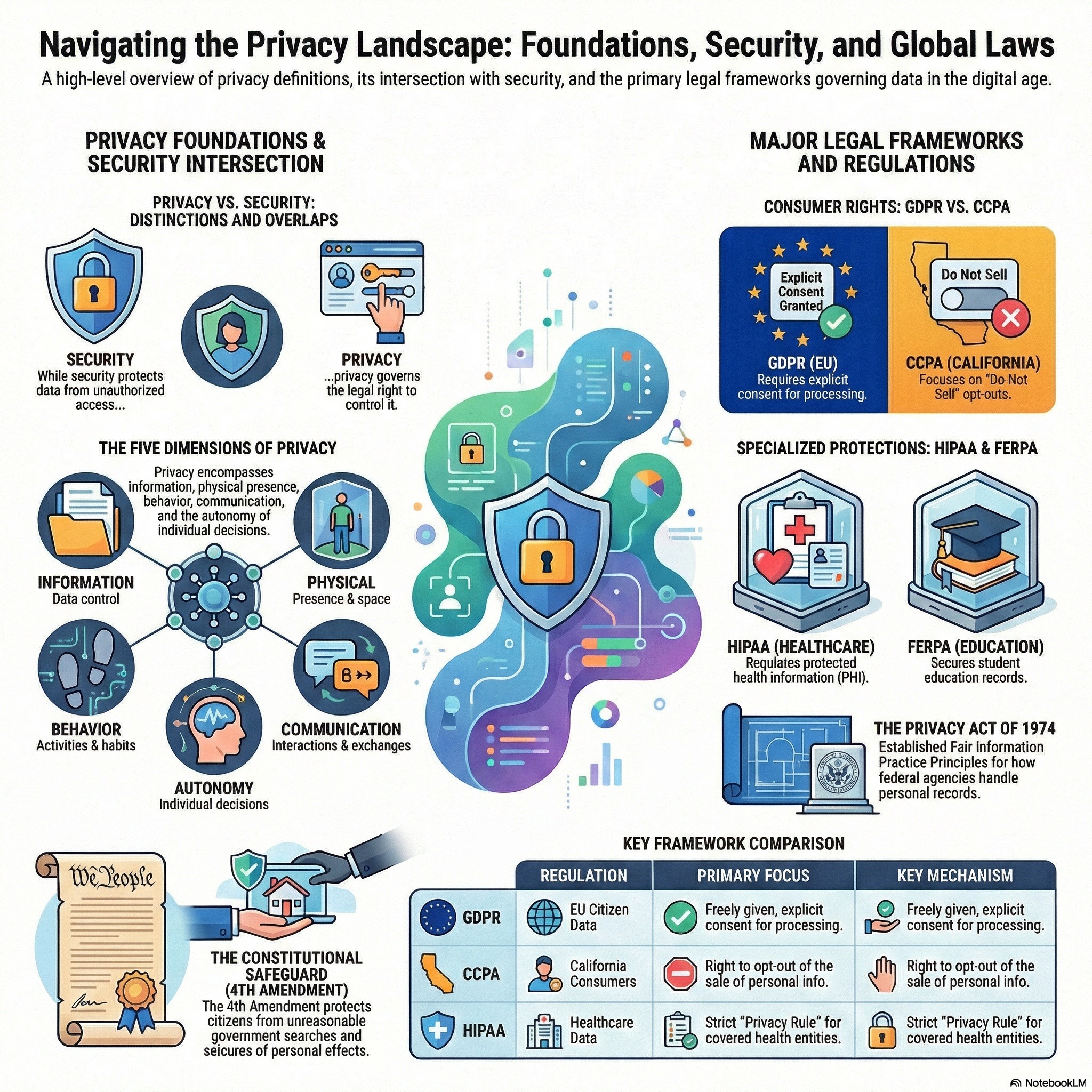 This presentation by Dr. Z defines privacy as a fundamental right. It categorizes privacy into data, physical, behavioral, communication, and decision types. The text also examines the links between privacy and security and legal regulations.