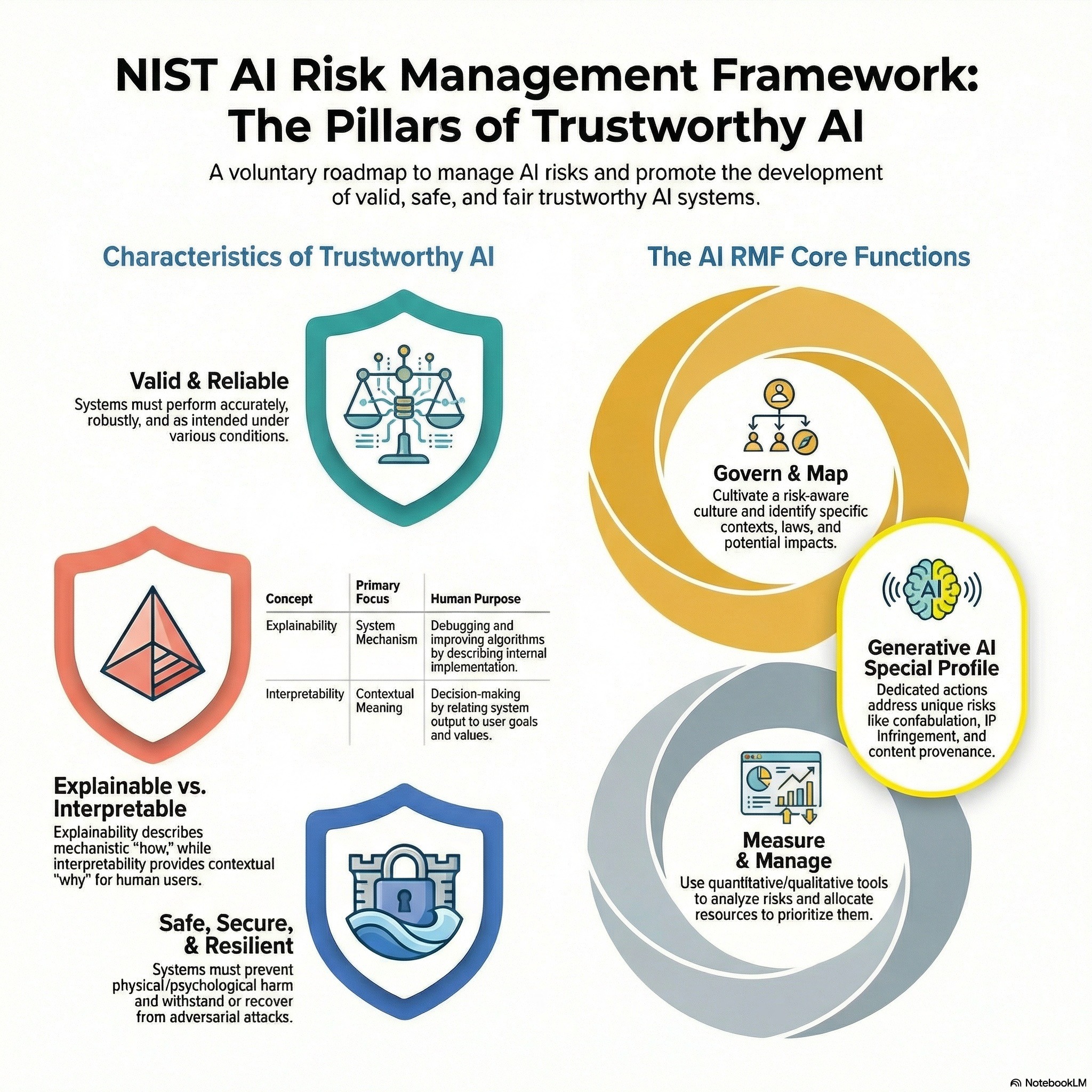 National Institute of Standards and Technology Interagency Report 8312, Four Principles of Explainable Artificial Intelligence, defines foundational guidance for designing AI systems that can be understood and trusted by users. The report outlines four core principles: AI systems should provide explanations for their outputs; those explanations should be meaningful and understandable to the intended audience; the explanations should accurately reflect how the system produced its results; and the system should operate only within the conditions for which it was designed and validated (knowledge limits). NISTIR 8312 emphasizes that explainability is context-dependent—what counts as a sufficient explanation varies across domains such as...