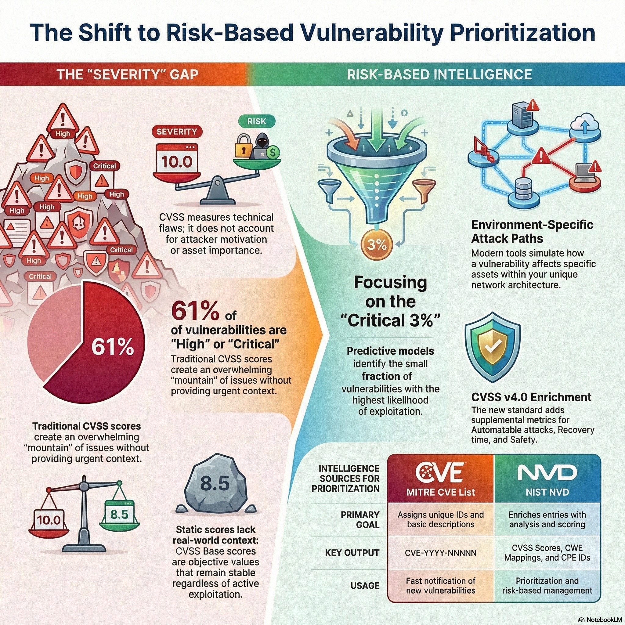 This podcast examines the essential frameworks used to identify, analyze, and rank security threats, specifically focusing on the roles of MITRE and the National Vulnerability Database (NVD). While MITRE serves as the primary authority for assigning CVE identifiers, the NVD enriches this data with CVSS scores to help organizations gauge the technical severity of vulnerabilities. The documentation highlights that CVSS measures severity rather than total risk, prompting the development of more dynamic systems like Tenable’s Vulnerability Priority Rating (VPR) and CVSS v4.0. These newer models integrate threat intelligence, environmental context, and supplemental metrics such as exploit maturity and sa...