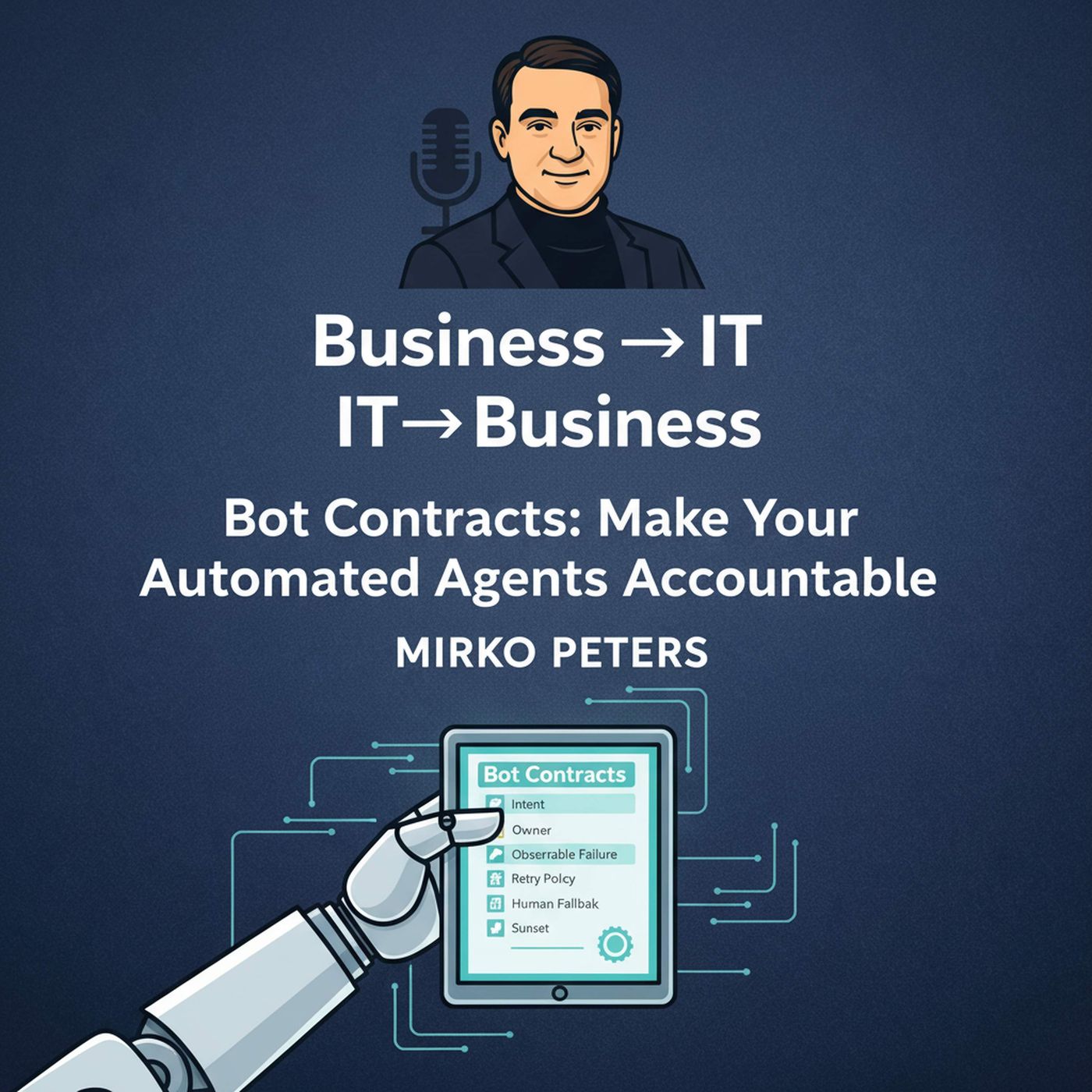 Automations act like invisible teammates: they make requests, change state, and fail at odd hours—but rarely carry explicit responsibility. This episode introduces the Bot Contract: a tiny, copy‑paste artifact you attach to any automation so business expectations and operational realities meet before trouble begins. Mirko opens with a short vignette (a pricing-bot that retried customers into double‑charges), contrasts what business expects from an 'always-on' agent with what engineering actually needs to operate one safely, and reads a live one‑line Bot Contract on air (Intent; Owner; Retry policy; Observable signal; Human fallback; Cost cap; Sunset). Listeners leave with a 7...