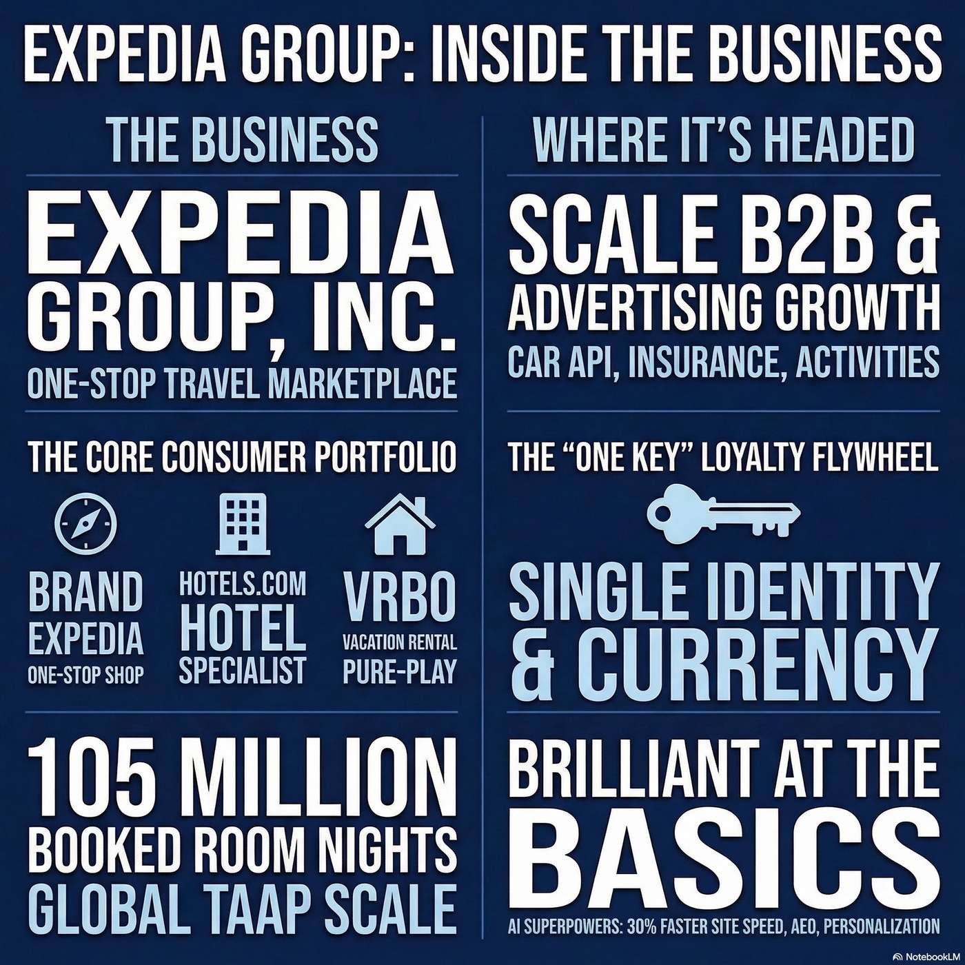 Expedia Group operates a global travel marketplace, generating revenue through direct consumer bookings and an expansive B2B technology platform.