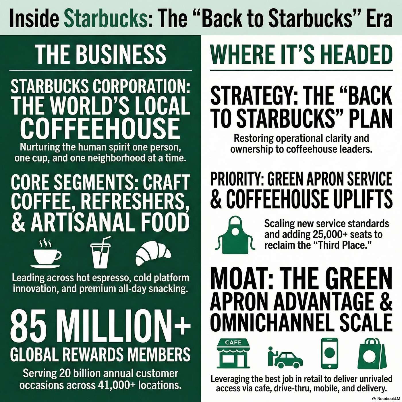 Starbucks operates a global network of coffeehouses, generating revenue through premium handcrafted beverages, food, and digital channels.