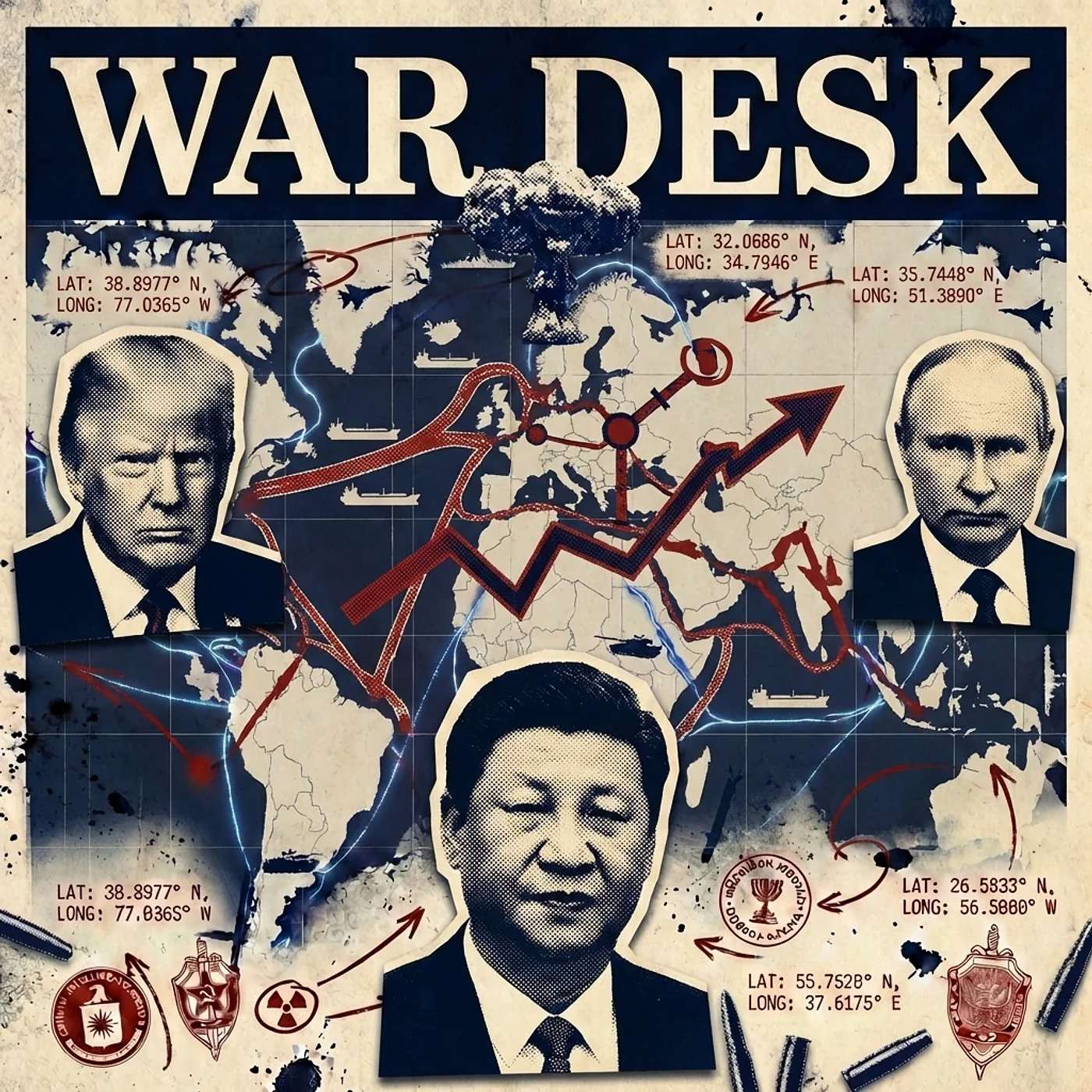 War Desk is an investigative podcast using AI-assisted analysis of military intelligence, diplomatic signals, and conflict data to assess global war risk...