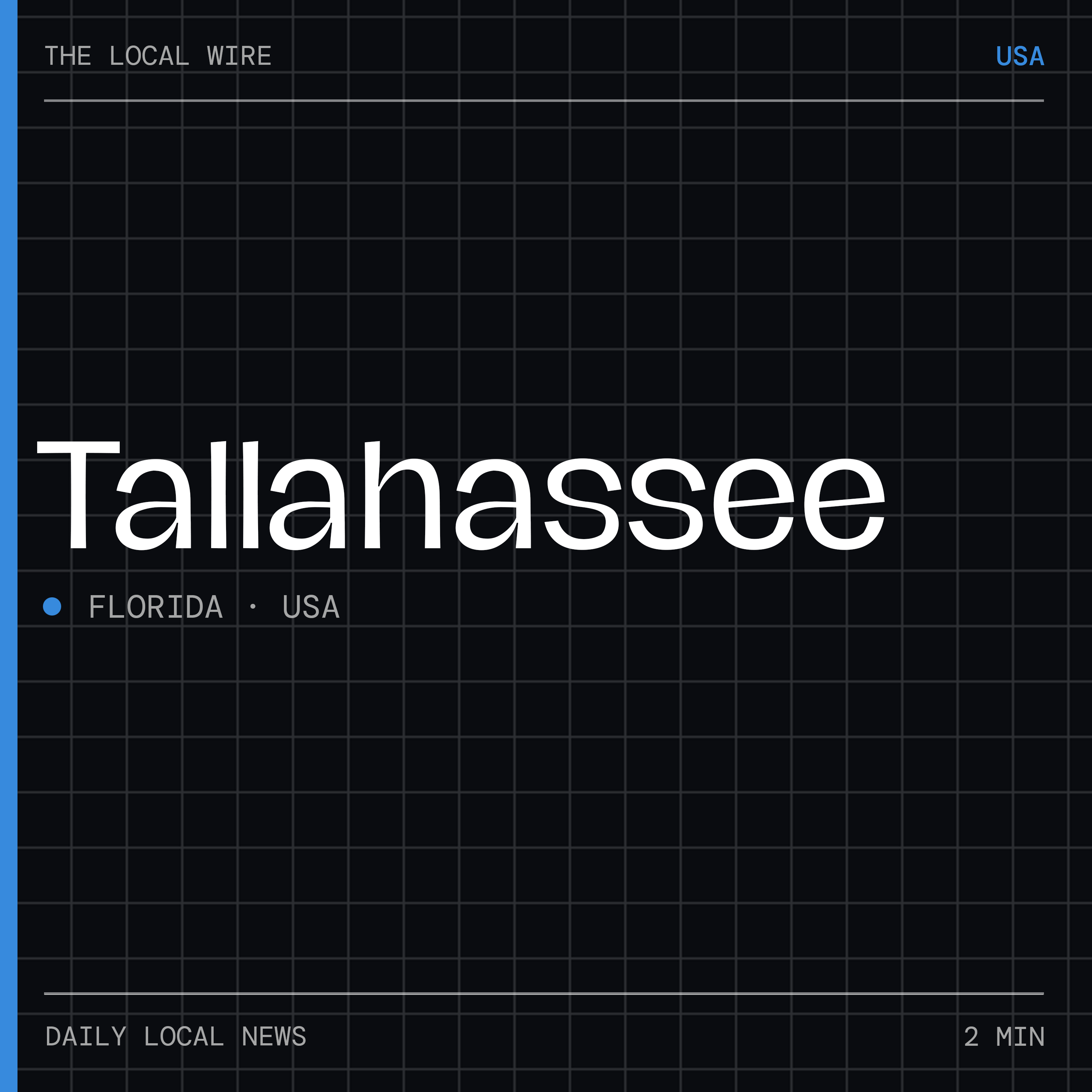 Your daily 2-minute news update for Tallahassee. Covering today's top local stories, community updates, and weather. Part of The Local Wire โ every city, every day.