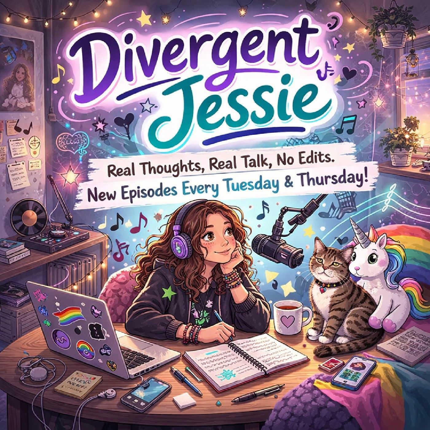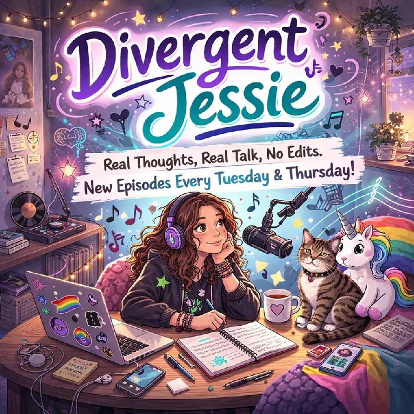 Hi, Jessie here—and no, still not Bob. Divergent Jessie is a podcast where I talk about being a neurodivergent teen, from day-to-day struggles to random thoughts that pop into my head. Nothing is edited, nothing is re-recorded—every episode is one take, exactly as it happens. So yeah… it’s real, a bit chaotic, and completely honest. New episodes every Tuesday and Thursday.