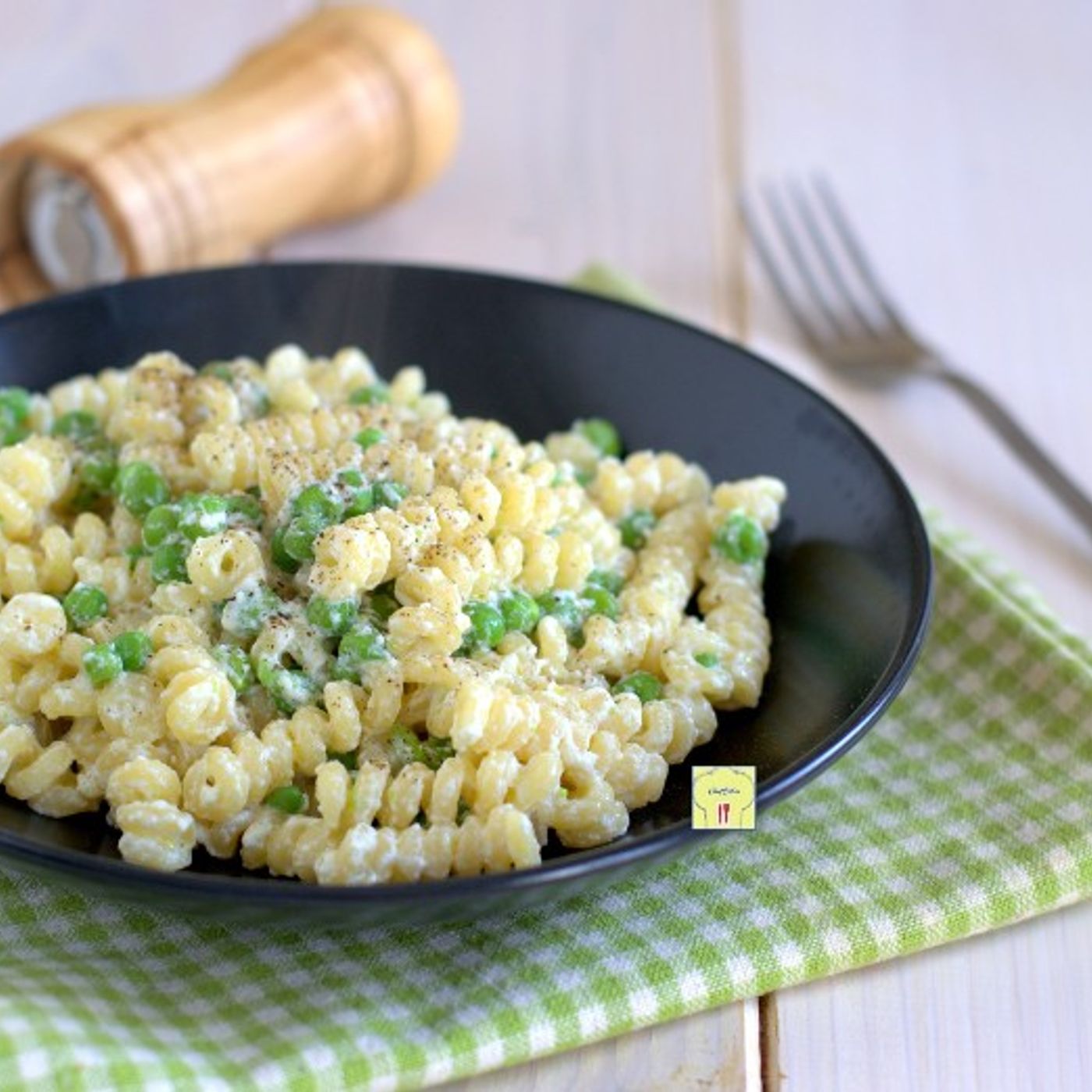 Trovi ingredienti, dosi e passaggi per la ricetta su Pasta ricotta e piselli qui: https://blog.giallozafferano.it/chezbibia/ricetta-pasta-ricotta-e-piselli/