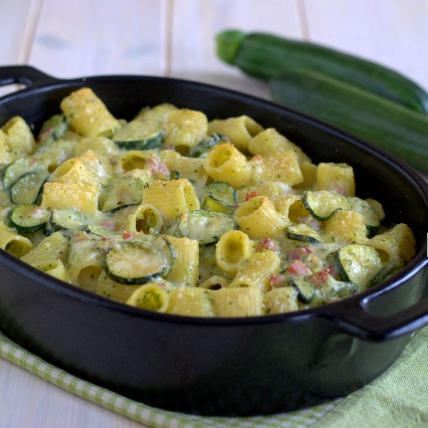 Pasta al forno con zucchine e pancetta