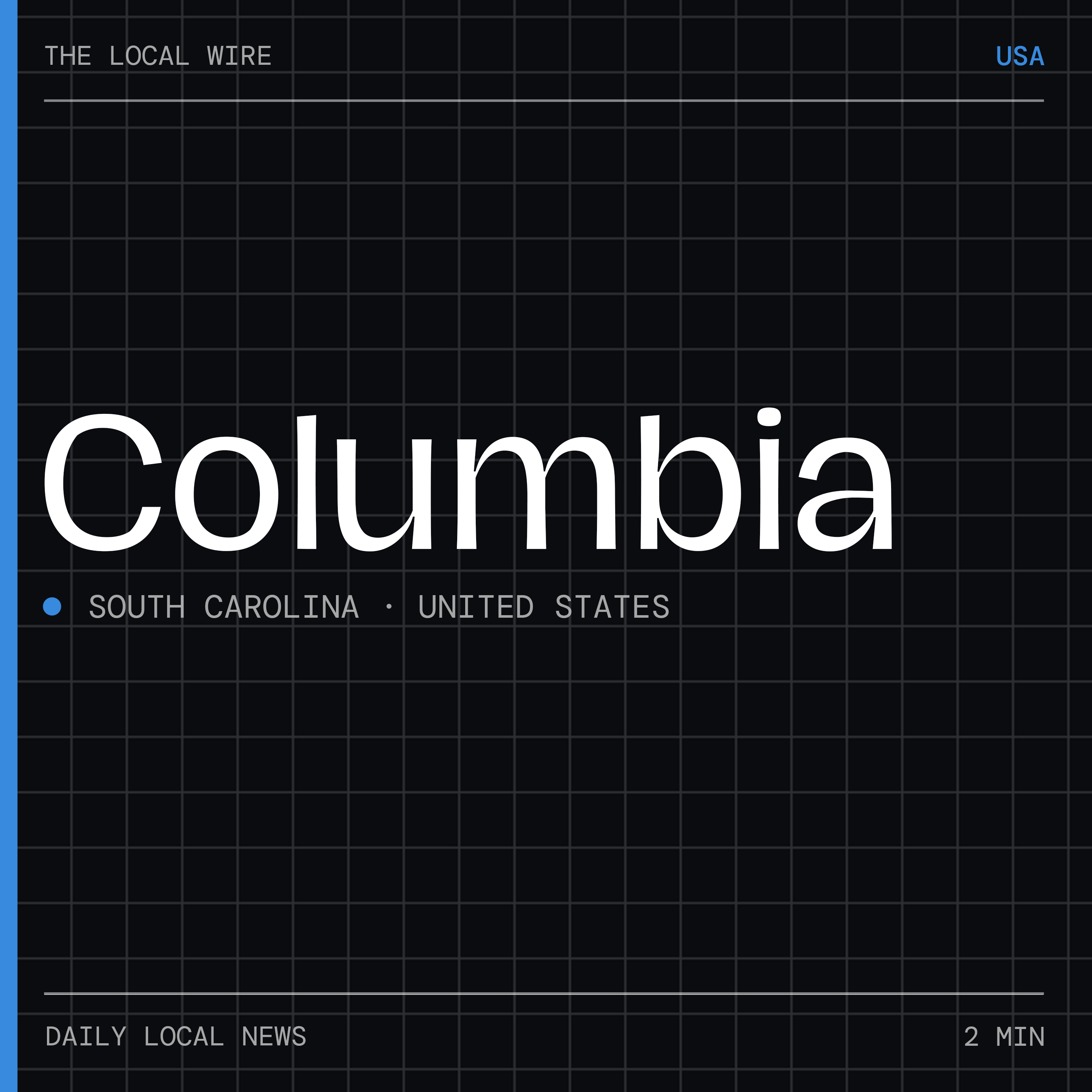 Daily 2-minute local news for Columbia, South Carolina (United States): key incidents, city decisions, events, weather, and trending stories. Fresh every day.Powered by The Local Wire.
