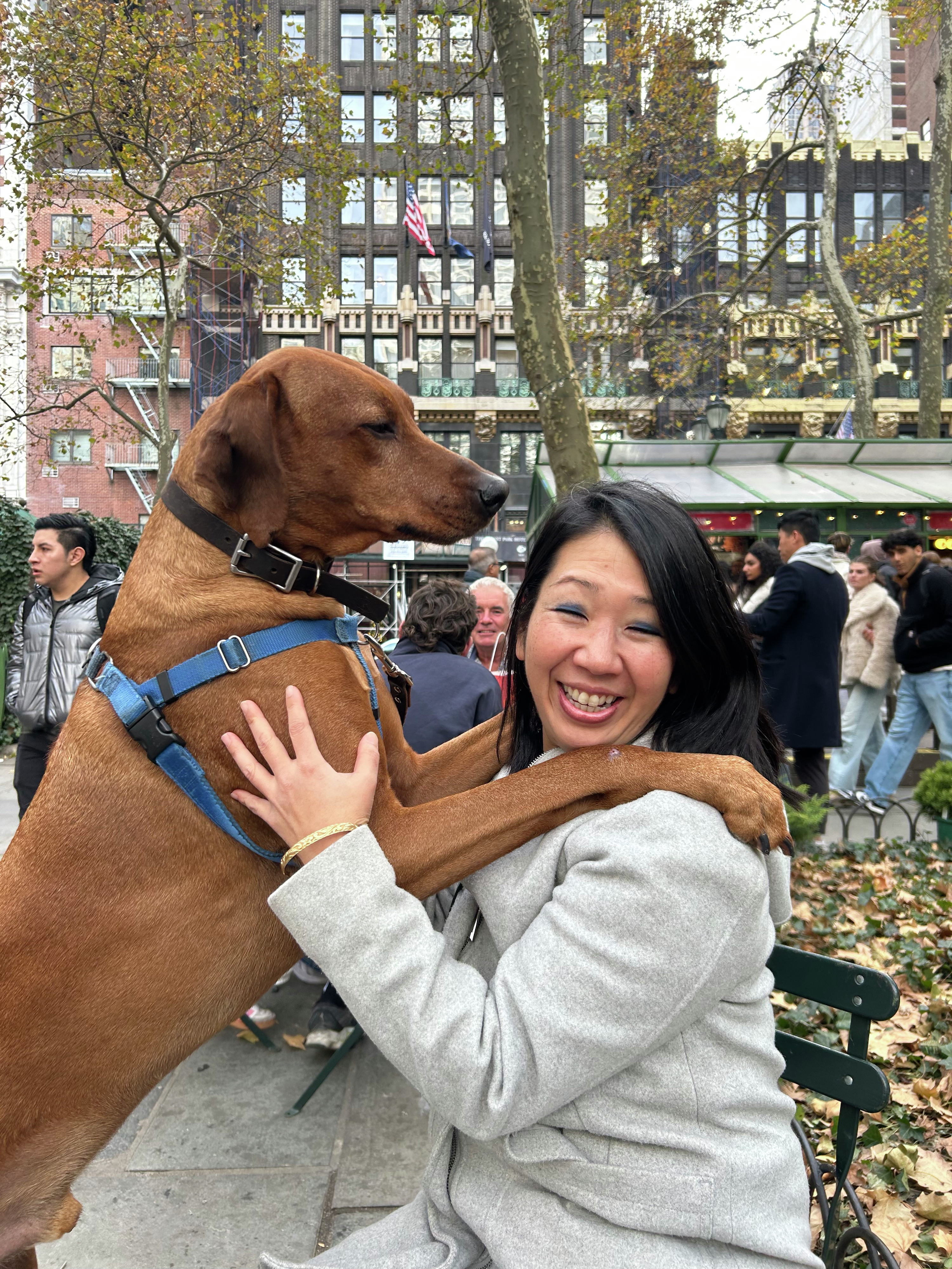 His owner, Andy Honda, is a Rhodesian Ridgeback fan, and chose Koa as a future running partner. They live a couple of blocks from Central Park in Manhattan, New York City.