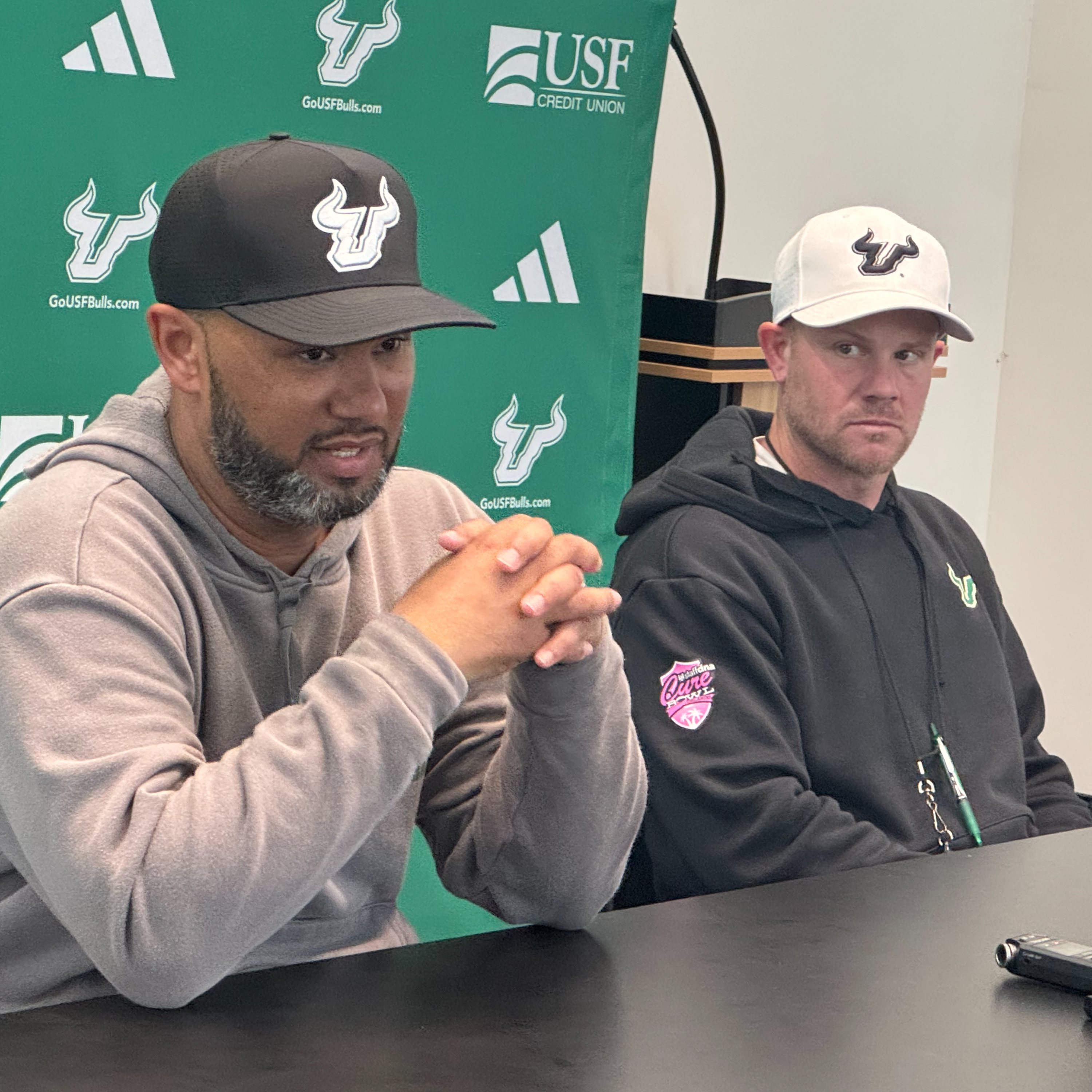 Listen in as new Bulls Runnings Back Coach Elijah Brooks, who was a standout college back and the last 3 seasons coached the position at Virginia Tech, along with WR coach Myles White sat down with Joey Johnston and other media who cover the Bulls on Thursday.
